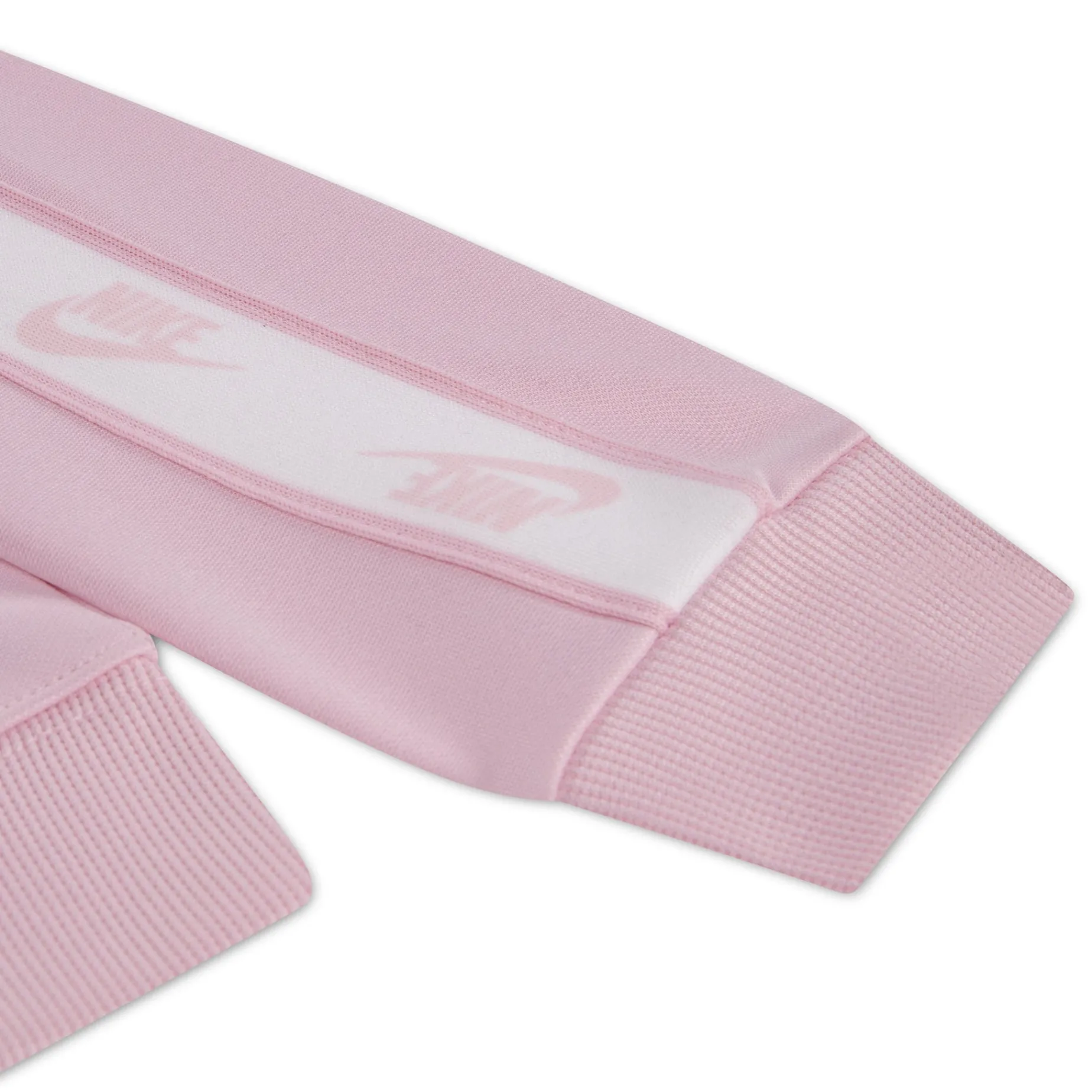 Dress your littlest athlete in this performance tracksuit from Nike, which is made of soft poly pique knit fabric enhanced with moisture-wicking Dri-FIT Technology to help keep them cool and dry while they play. The full-zip jacket has a roomy cut to make layering easy and the ribbed cuffs and hem help retain warmth. The matching pants have a stretchy waistband for a comfy fit and tapered legs with ribbed cuffs that provide a cozy, secure feel. Pair with any Nike tank or tee for a completed look.