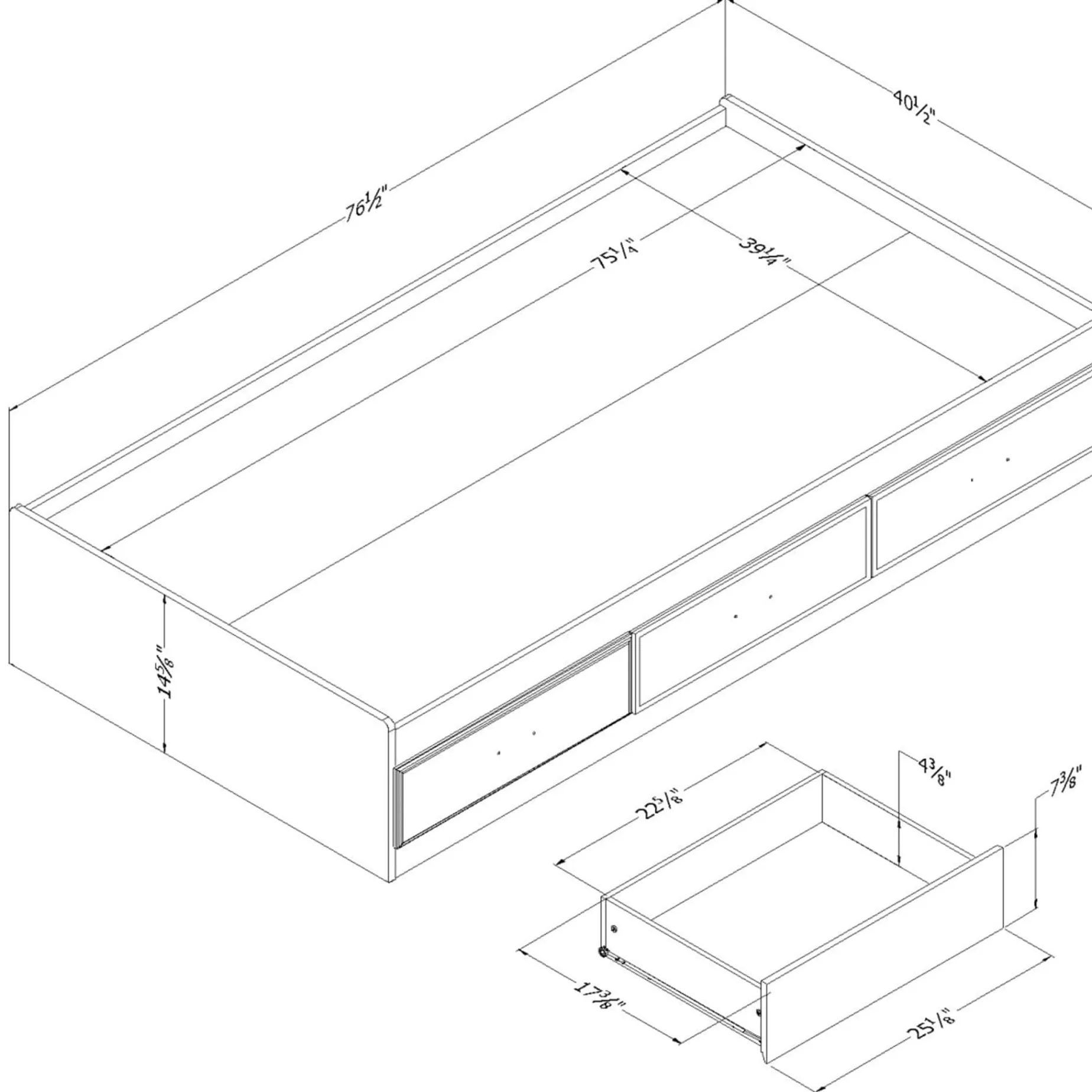 Fynn Twin Mates Bed with 3 Drawers – Winter Oak