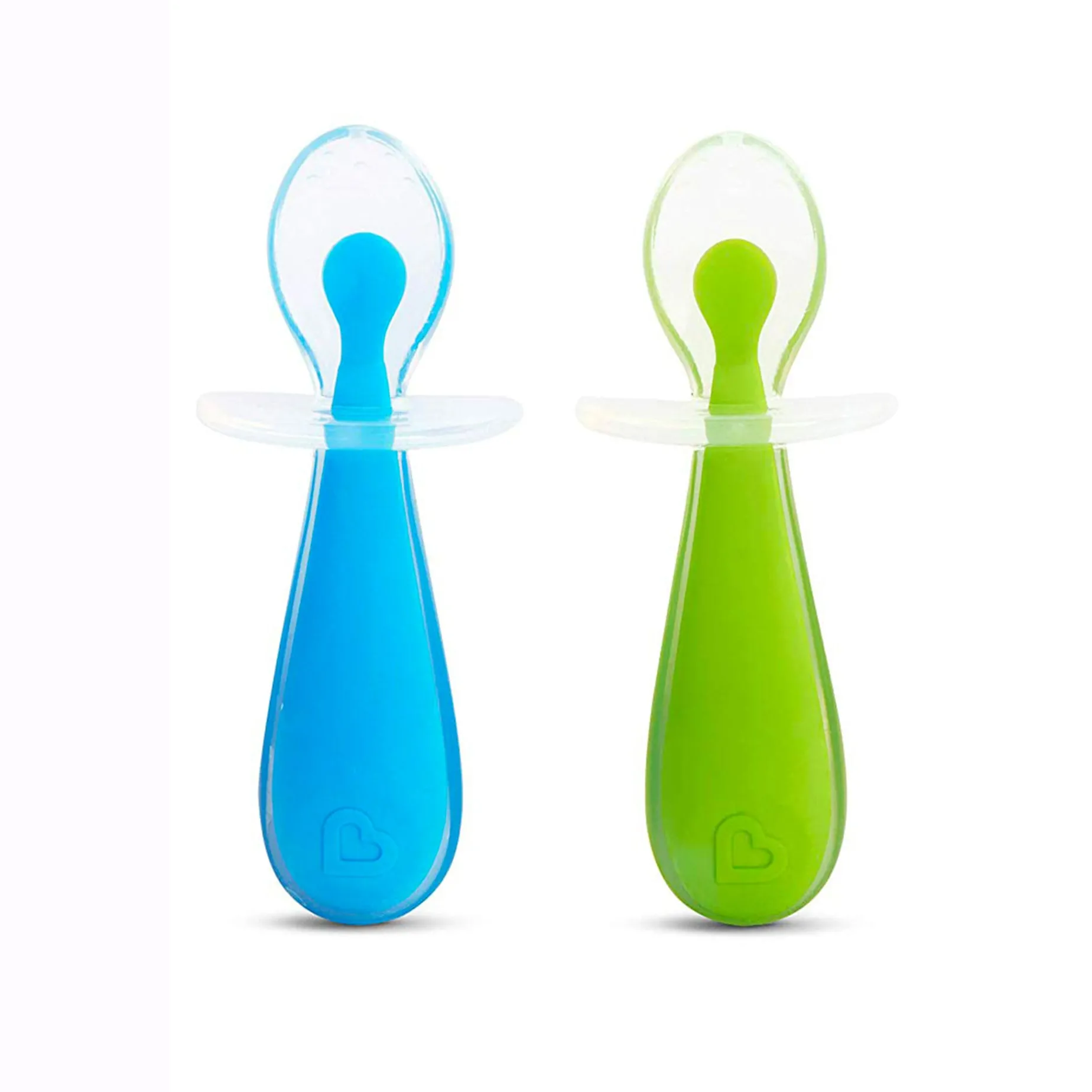 -Pack of two silicone toddler training spoons