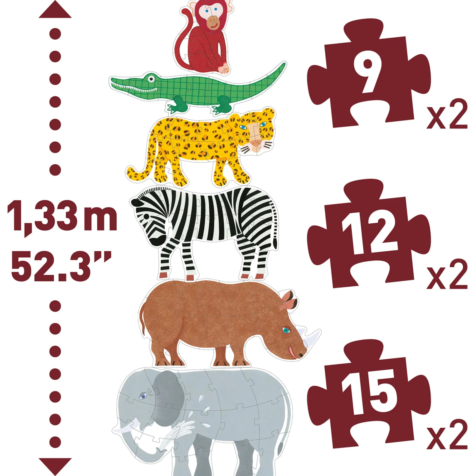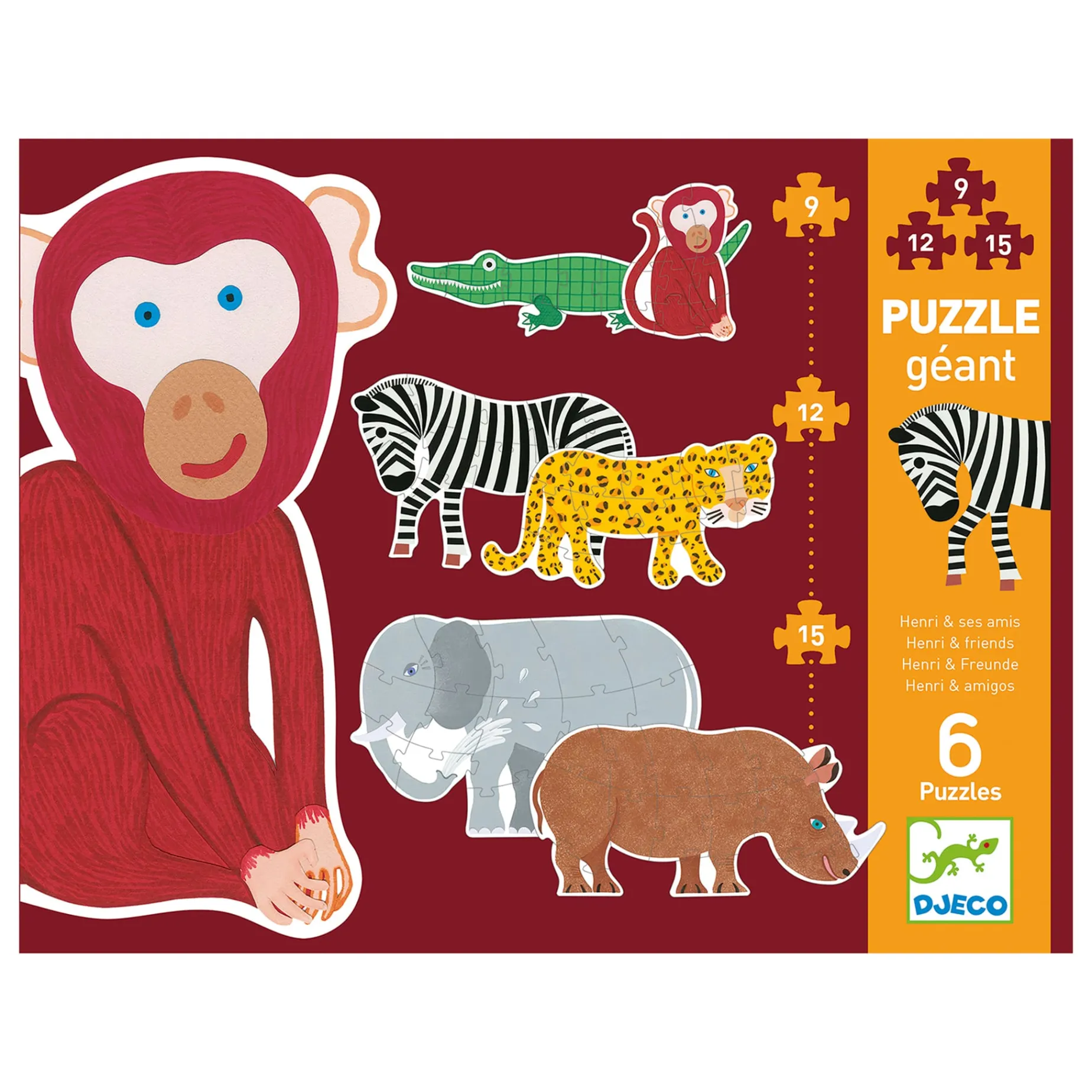 6 puzzles of 9, 12 and 15 pieces.