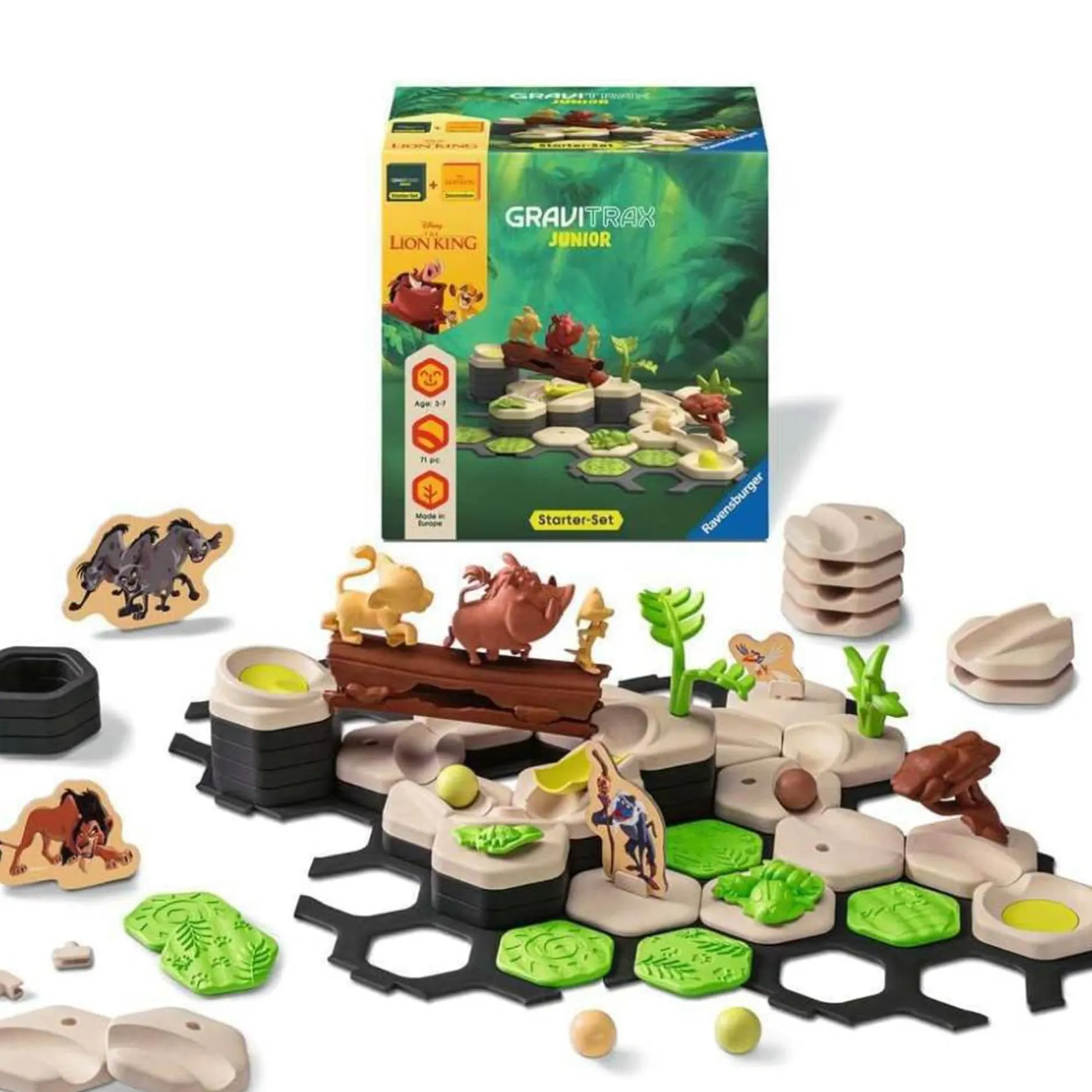 With the GraviTrax Junior Disney Lion King Bundle, children from the age of 3 can immerse themselves in the world of the Lion King.