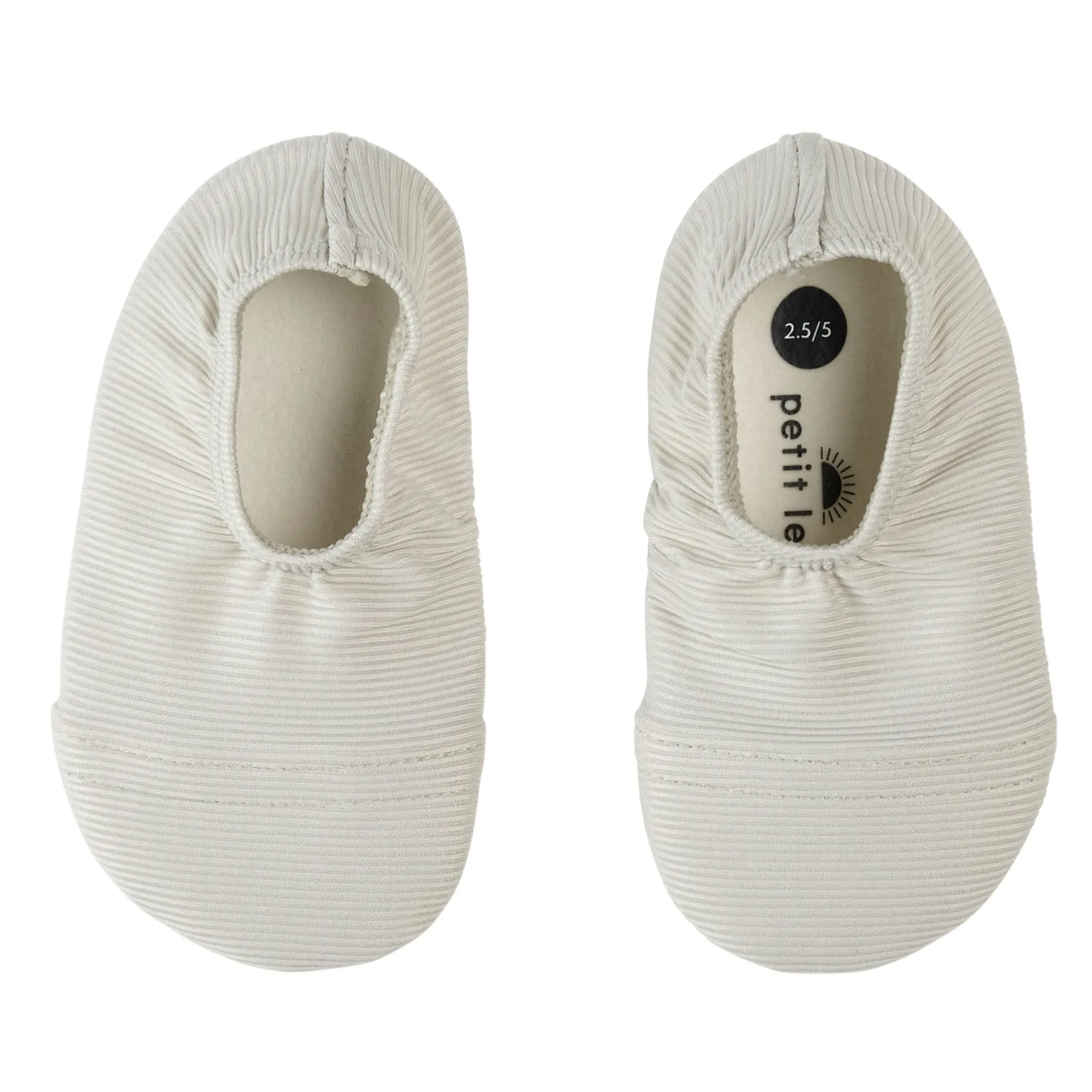 Perfect for little feet on the go, these light grey water shoes combine comfort and practicality during all water or sandy adventures. Made from flexible, quick-drying nylon, they move effortlessly with every splash, jump, and giggle. The slip-on design makes them totally convenient for spontaneous beach days or a quick paddle.Â