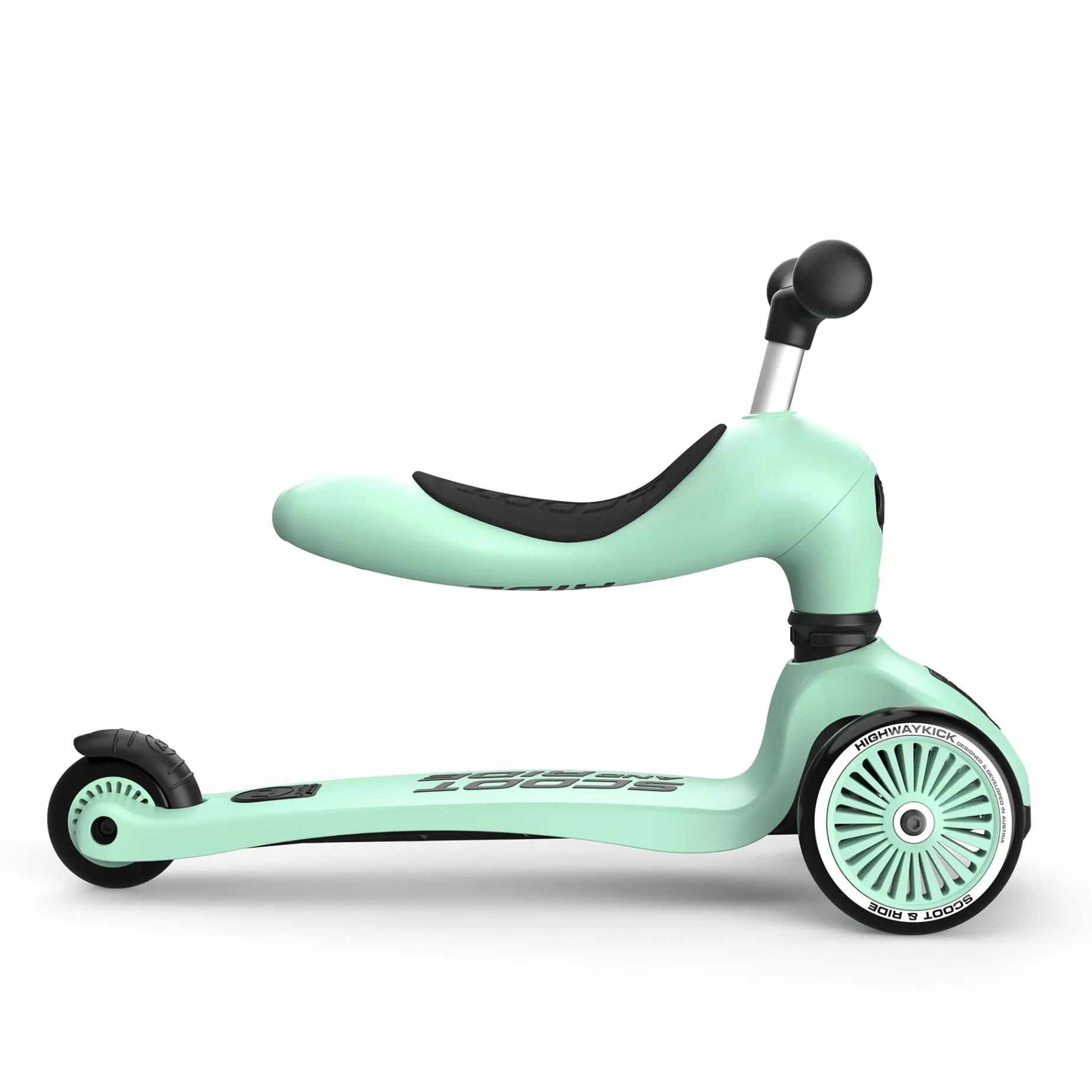 This model offers three height settings for both riding and scooter configurations.