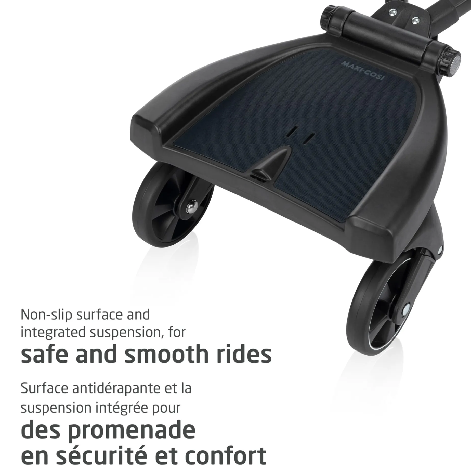 -[MAXI-COSI STROLLER COMPATIBLE] – The Hop-on Board adjusts in width, length, and height, making it suitable for nearly all Maxi-Cosi strollers, except the Lara.