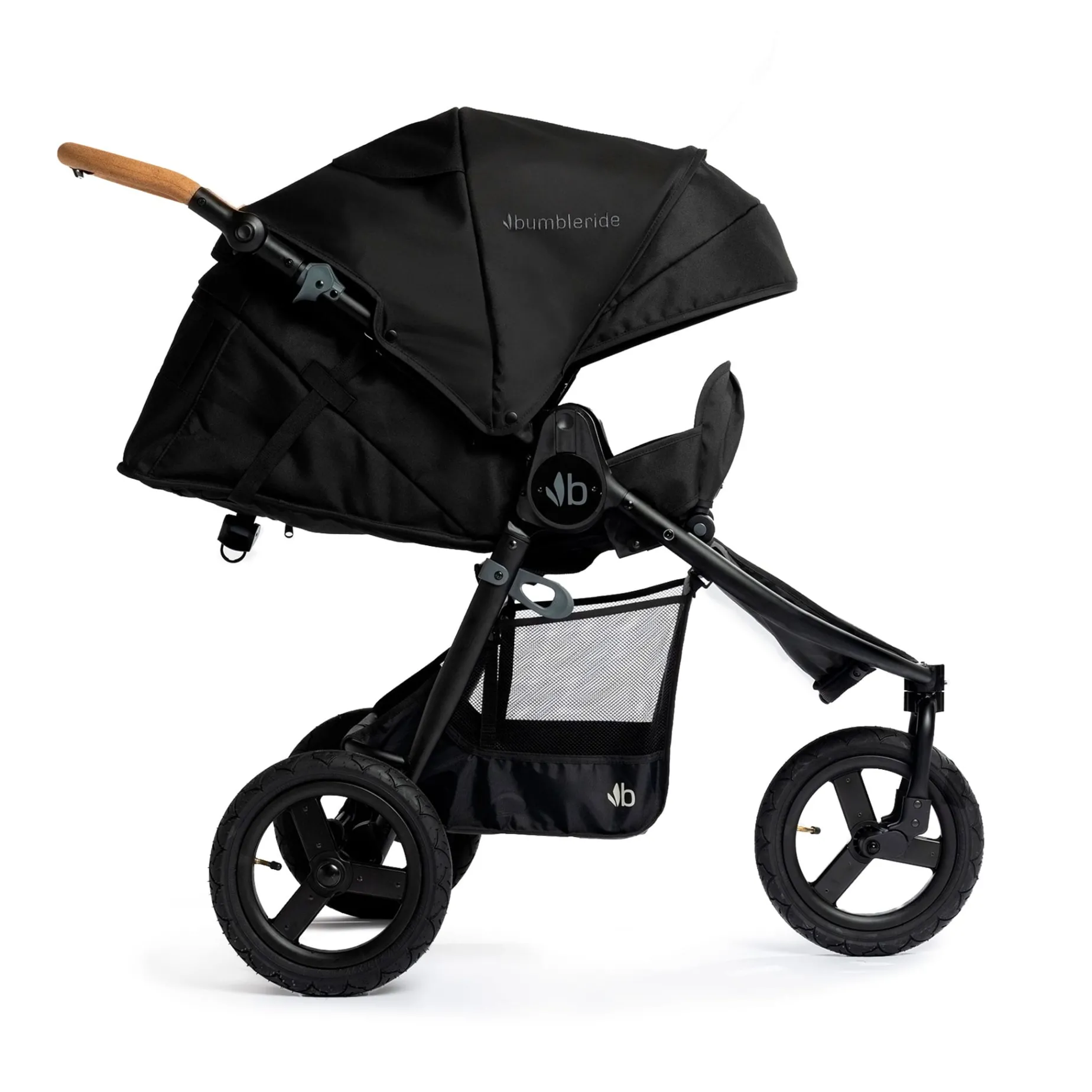 The Bumbleride Indie is our all-terrain stroller complete with a lightweight frame and compact footprint for ultimate versatility. It gets its smooth push from air-filled tires and all-wheel suspension. Indie has a lay flat seat and built-in infant mode. Ready to use from birth (with no attachments) and through toddlerhood. Debuting in 2024 with a 100% natural and non-toxic cork handle. Responsibly made and manufactured.