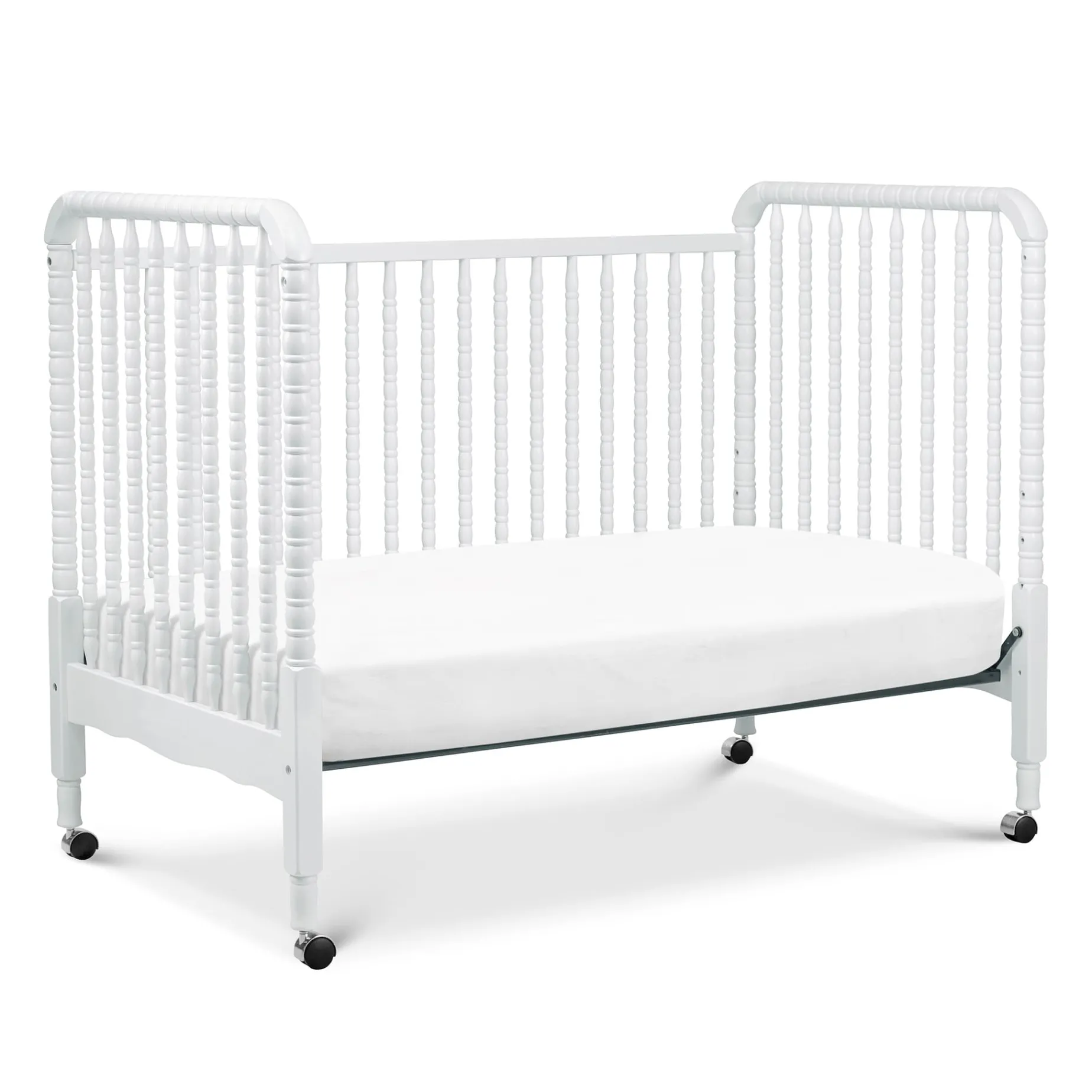 DaVinci’s beloved Jenny Lind 3-in-1 Convertible Crib brings classic, vintage-inspired charm to the nursery. Signature heirloom style and solid wood spindle posts are paired with easy assembly and convertibility for use beyond the nursery years. Crib converts to toddler bed and daybed, with wheels included for mobility.Â