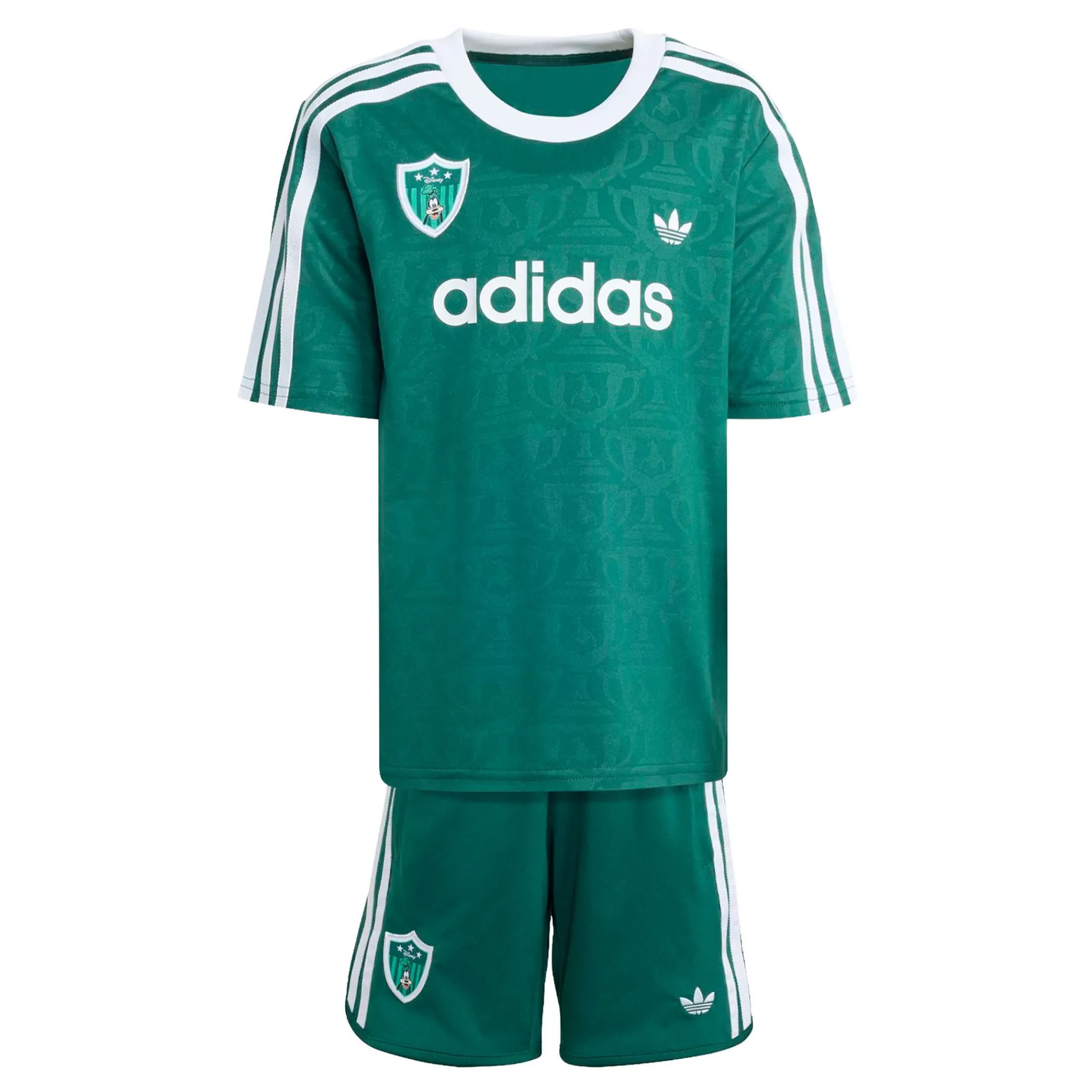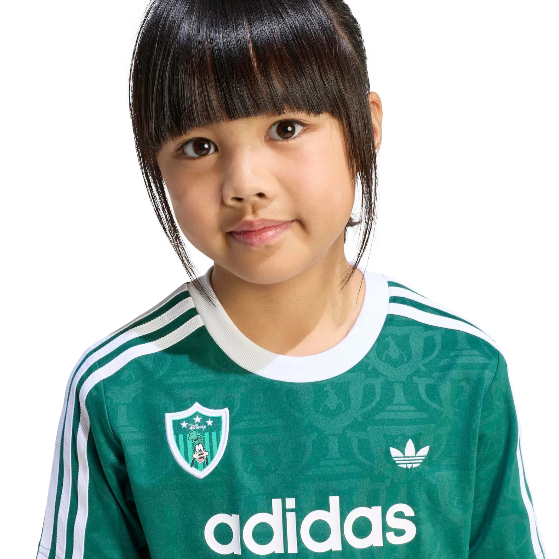 The ADIDAS DISNEY SHORT JERSEY SET for kids combines everyday comfort with a dash of Disney charm. This set features a loose-fitting top and regular bottom, perfect for active play and relaxation. The drawstring waist ensures a snug fit, while the knit fabric offers a soft touch against the skin. Celebrate the joy of football with Goofy, making it a delightful addition to any child’s wardrobe.