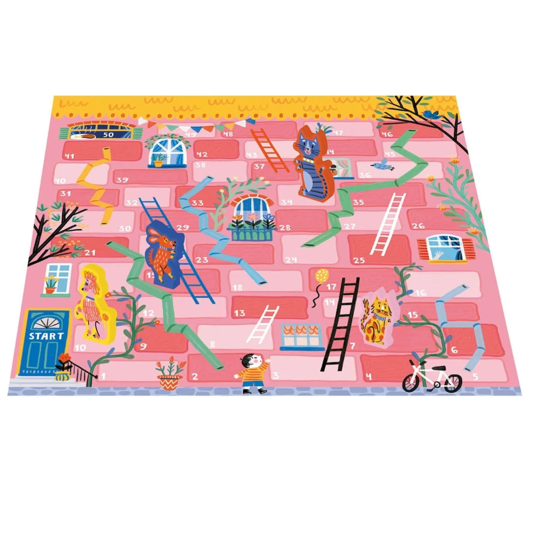 A snakes and ladders game with wooden pawns. The double-sided tray allows you to evolve on two levels.