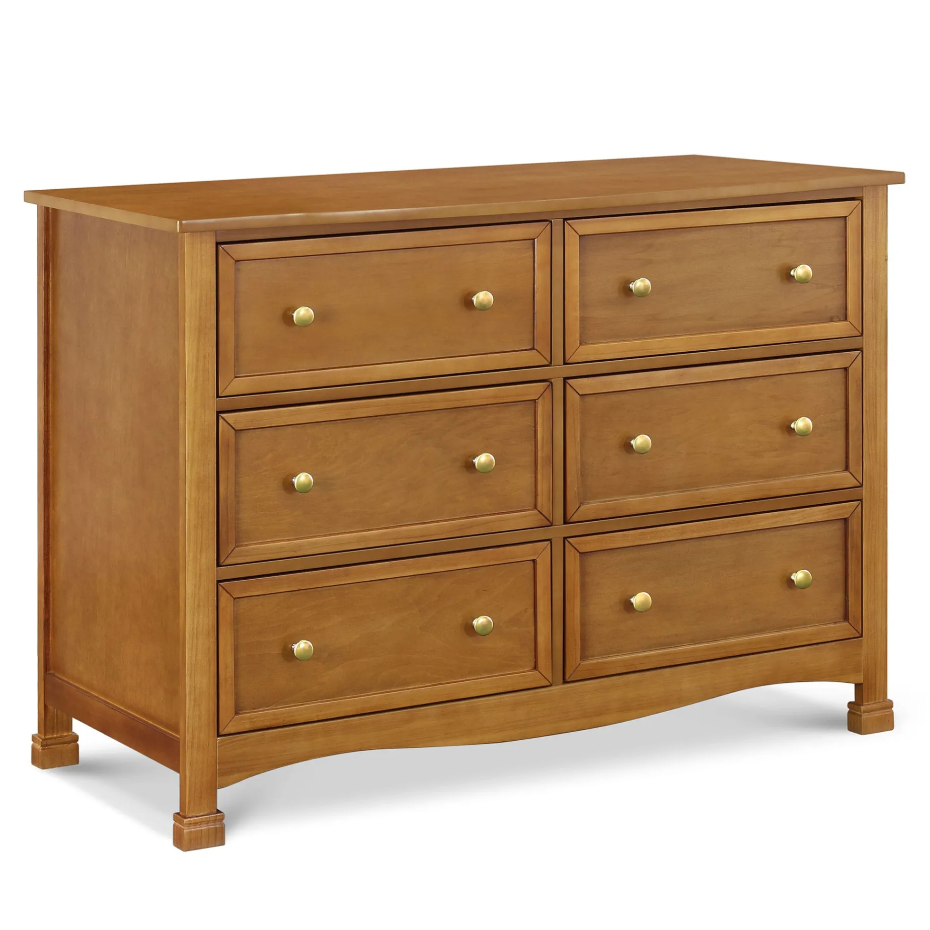 The Kalani 6-Drawer Dresser is the smart changing and storage solution for the classic Kalani, Emily and Fiona nursery collections. Six spacious drawers provide ample storage to organize all of baby’s necessities, while its thoughtful design ensures a style fit for any nursery or bedroom. The Kalani Double Dresser is detailed with recessed front drawer panels, a gently curved apron front and curved top sides.