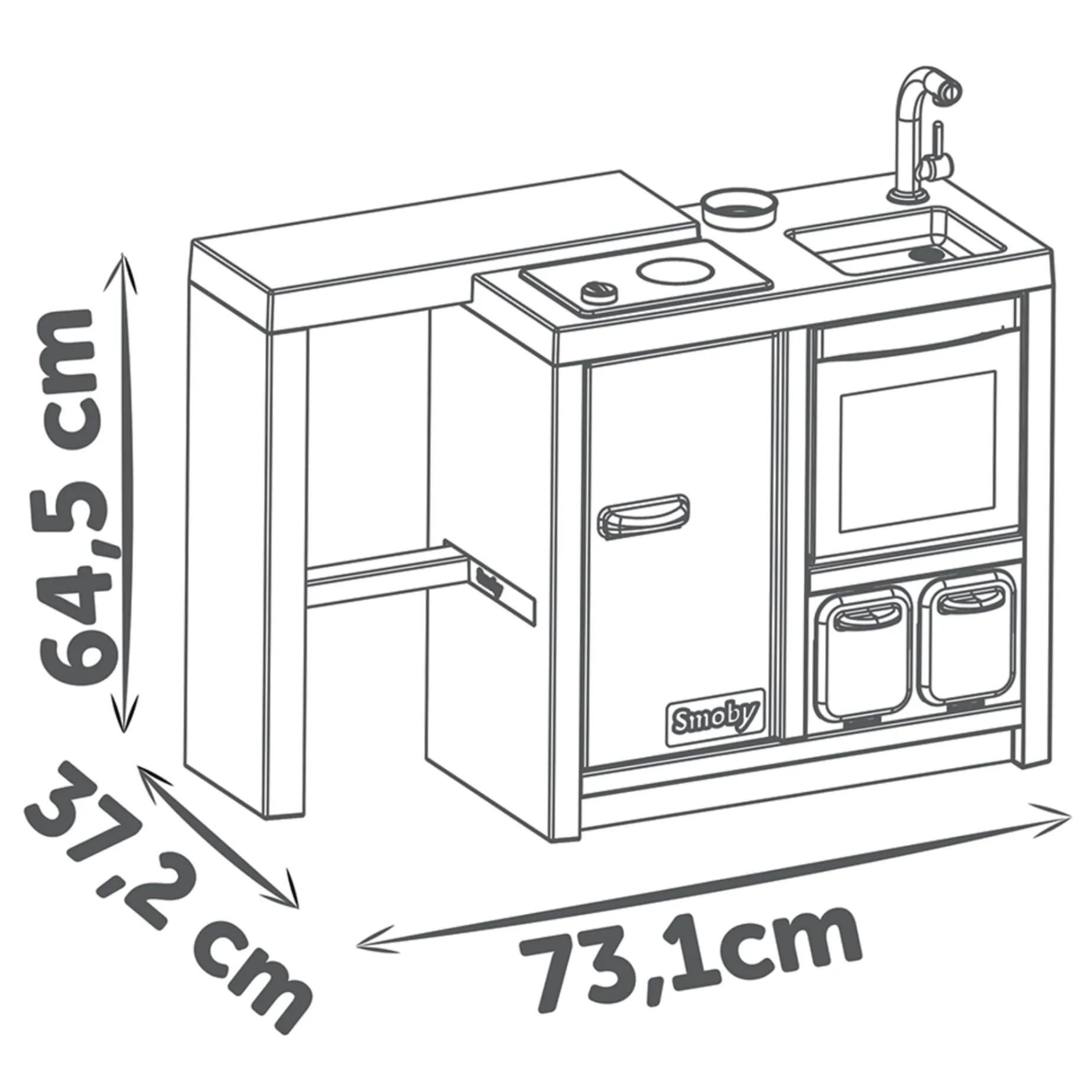 A kitchen island with a large 360° play surface—perfect for little chefs! Packed with playful features to spark imagination and role-play.