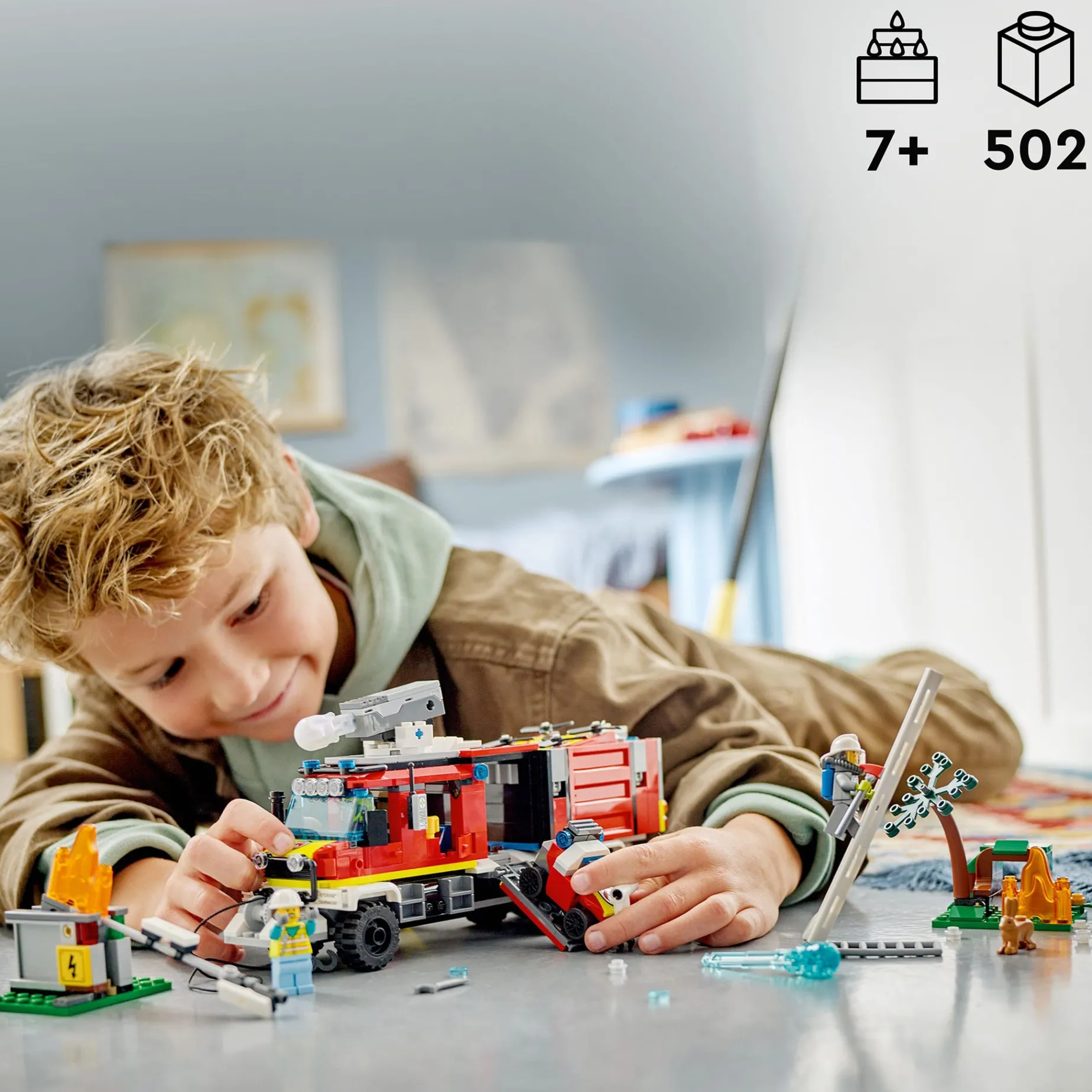– Multifunctional LEGO® City Fire Command Truck set for kids aged 7 and up