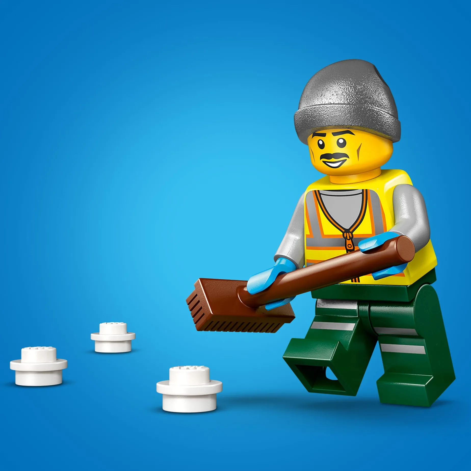 Kids can tilt, raise and lower the front blade, load LEGO® salt elements into the hopper and push the truck to activate the salt-spreader function. The truck also features a 2-seat cab that tilts for engine access, side storage boxes for pretend salt and clips to hold tools. Just add the driver minifigure to set off on exciting winter clean-up adventures.