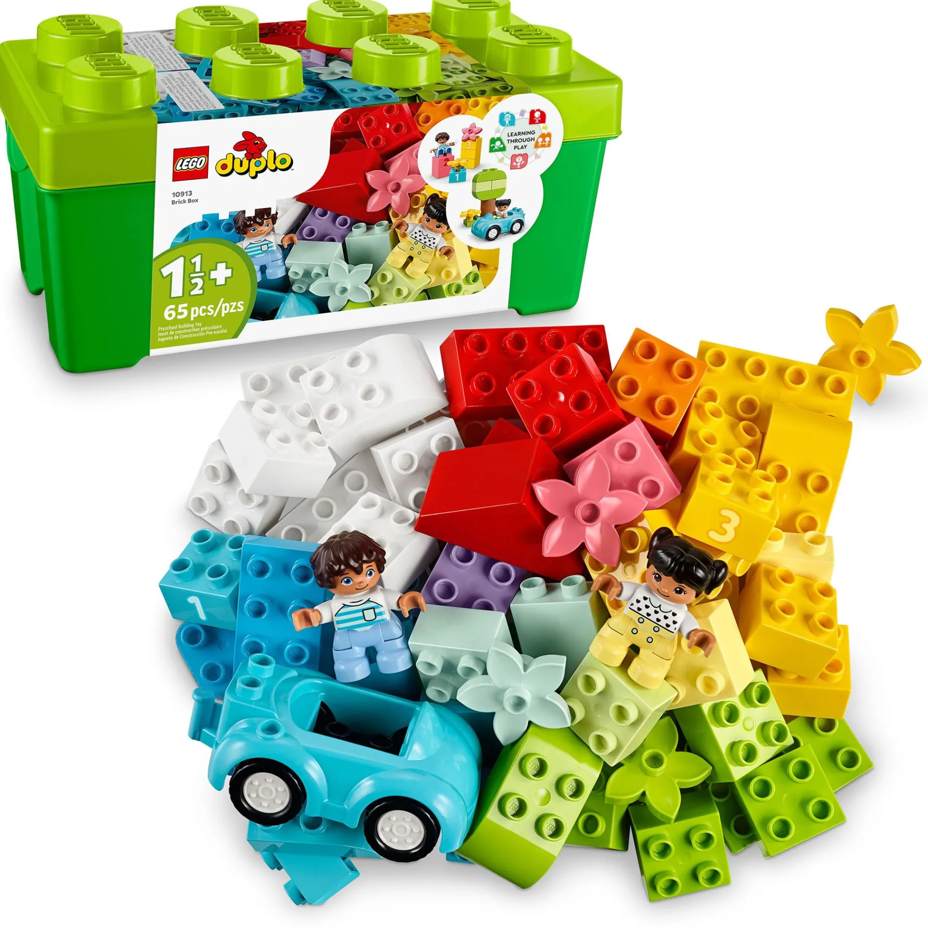 – Includes 65 colorful bricks plus familiar pieces to inspire young minds