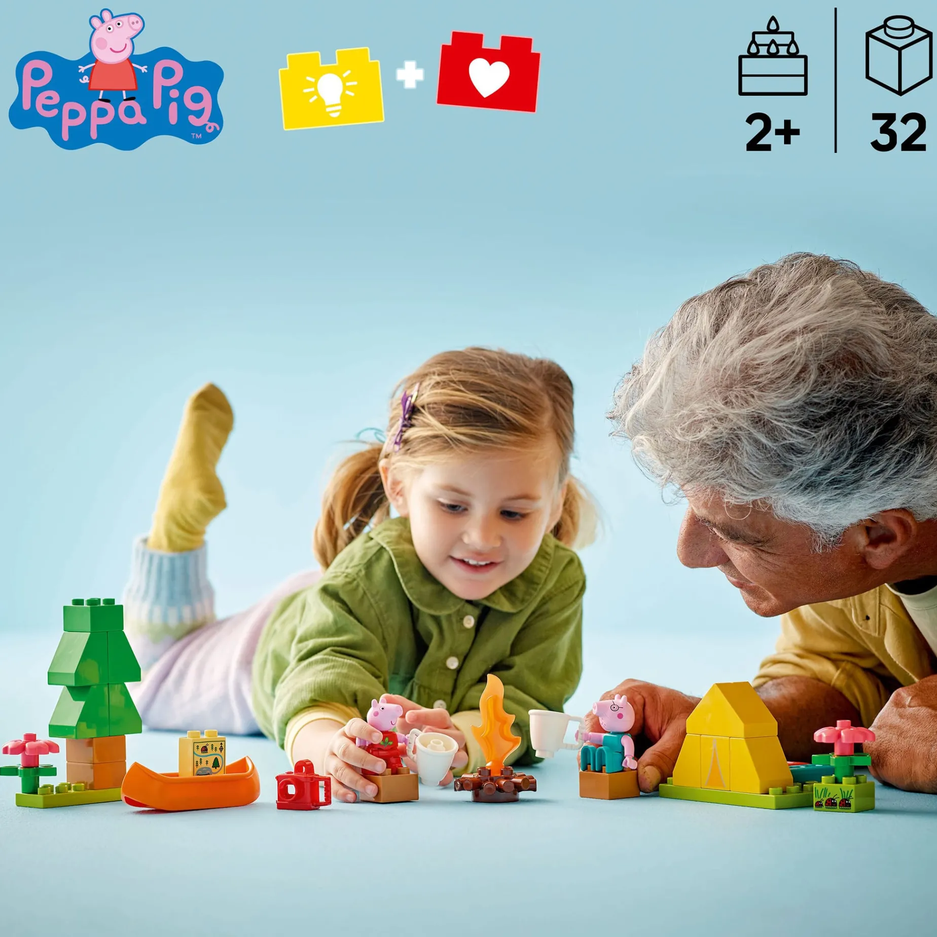 Toddlers can set off on a LEGO® DUPLO® Peppa Pig adventure with the Camping Trip (10452) playset. Through imaginative play, preschoolers explore how they feel about new experiences by pretending to camp with Peppa and Daddy Pig before taking a canoe ride down the river.
