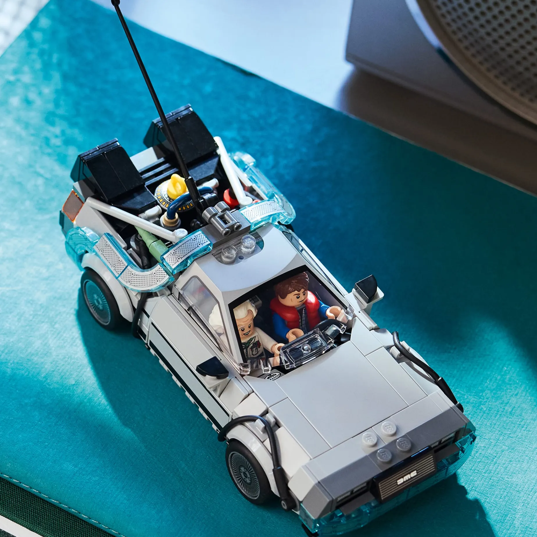 Build the legendary car with the lightning rod and California license plate from the first movie, then transform it into the flying version from the second movie with the Mr. Fusion reactor, an orange plate and angled wheels. Both versions feature rear vents, a detailed cockpit, a flux capacitor and a time circuit.