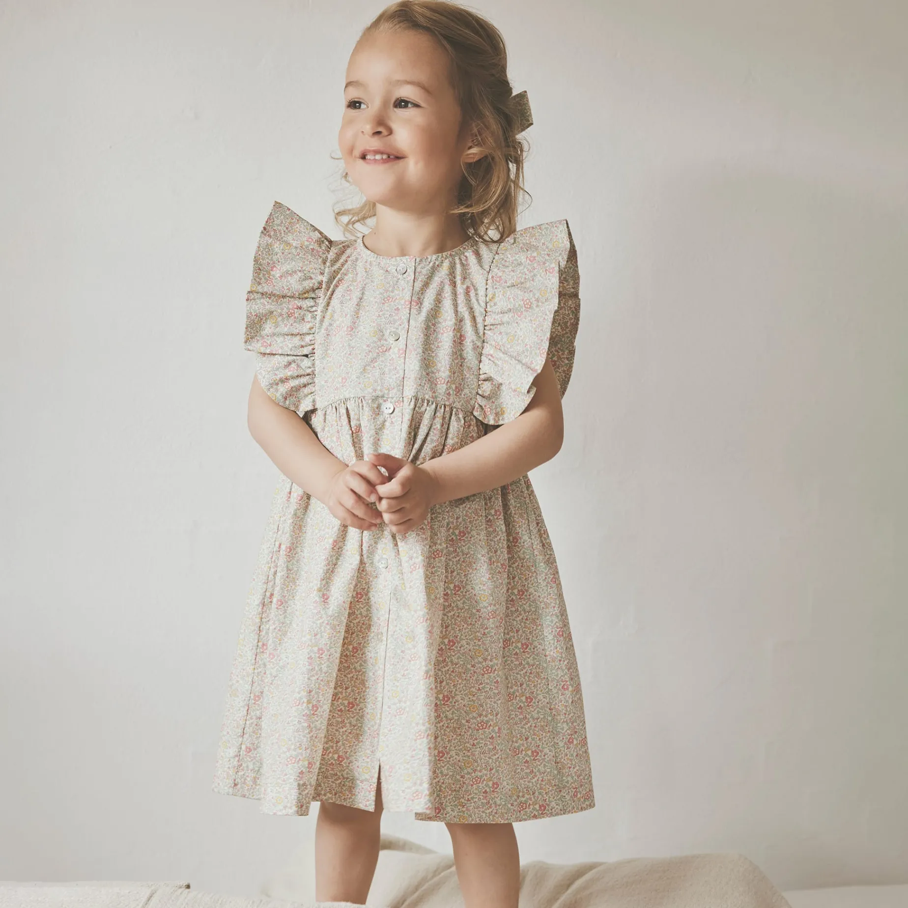 Adorable summer dress from HUTTEliHUT in Liberty pattern. It has lots of cute details and buttons all the way through the front. Made with Liberty Fabric. Certified acc. to OEKO-TEX® STANDARD 100 Cert. No. 2276-364 DTI