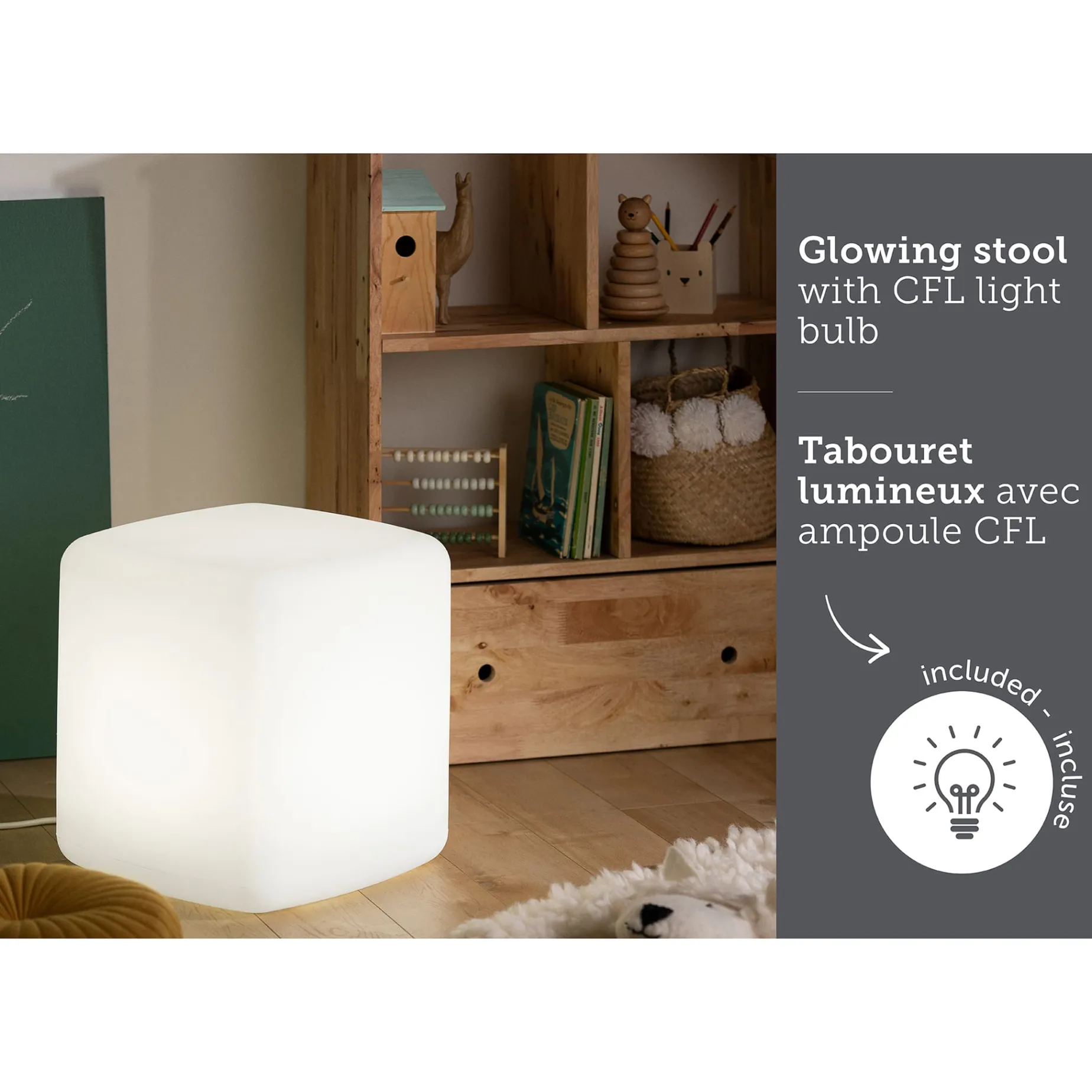 This cube-shaped piece has a lot of uses! Put it in the playroom, so kids can sit next to it to draw, read a book, make things with Lego, or play with their toys. Older kids can place it next to a table and use it as a chair. This piece of furniture is so light, they’ll find it’s easy to move around. There’s also a nice surprise hidden in this table: it’s a light as well! That’s right: when plugged into an outlet, the compact fluorescent bulb gives off a nice light in the room. Your children will see what they’re doing, even if they’re playing after dinner.