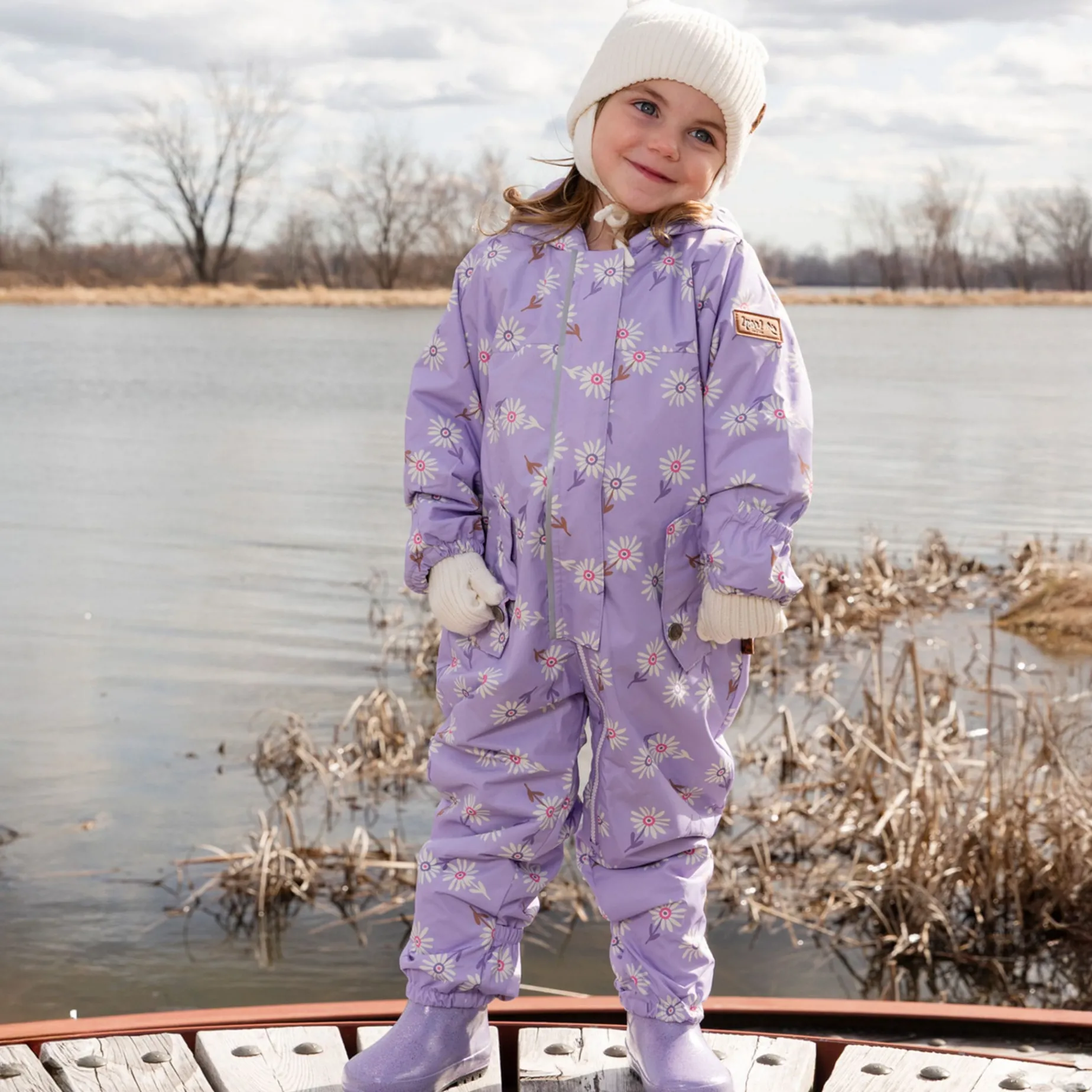 Adorably practical, this baby mid-season one-piece outerwear with hat in pink with flower print keeps little girls warm and protected. Made from eco-friendly recycled fabric, this suit features a polar fleece lining, a flip-over design at hands and feet, and a durable water-repellent BIONIC-FINISH® ECO coating. Complete with a brushed jersey hat, this charming set ensures comfort and coziness for every outdoor stroll.