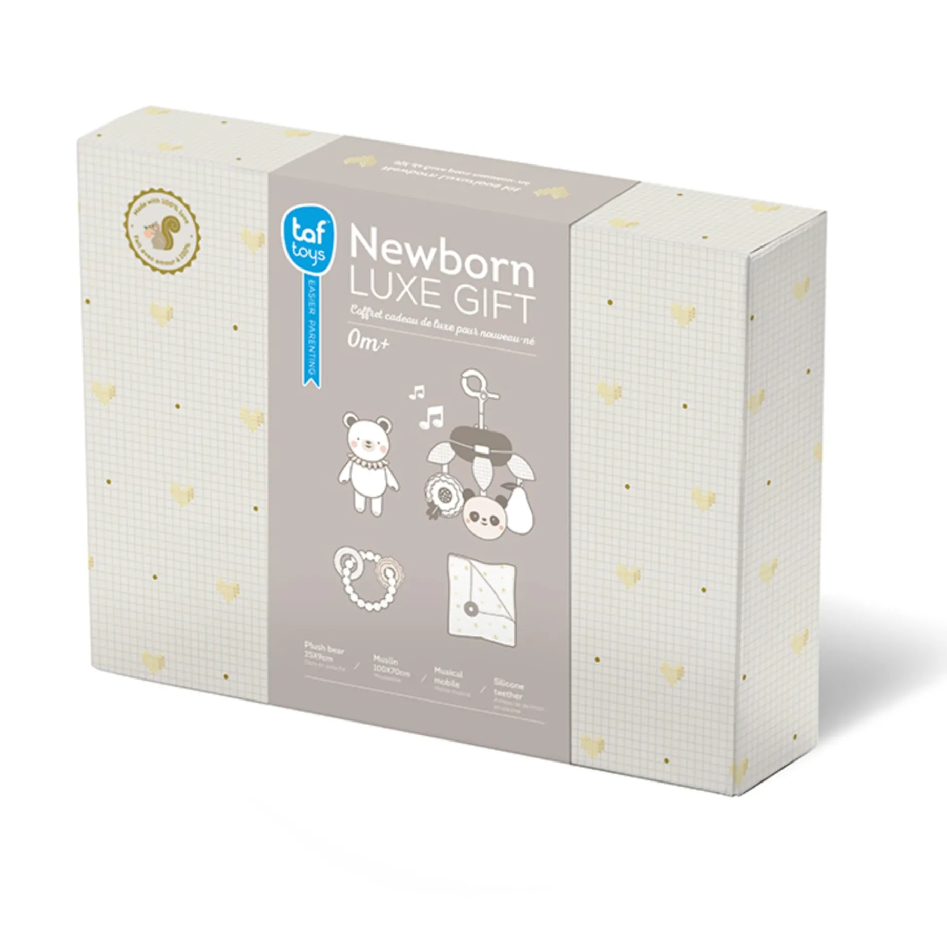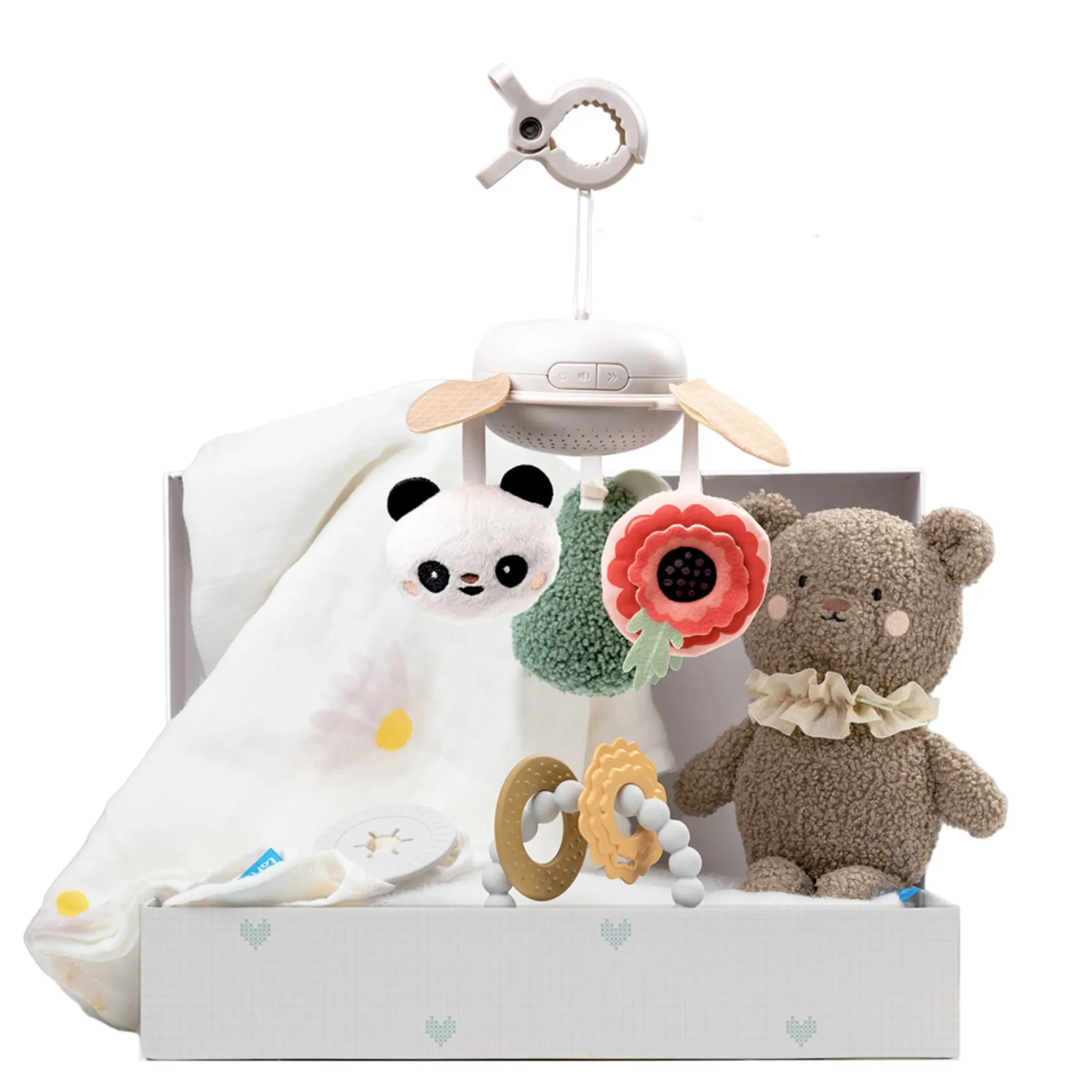 Welcome new babies with the Taf Toys Luxury Newborn Kit, a premium baby gift set designed to bring joy, comfort, and convenience. This thoughtfully crafted set includes an extra-large swaddle, a soothing musical mobile, a soft bear plush, and a silicone teether ring. Each item is crafted for little hands, promoting sensory exploration and emotional bonding. Ideal for baby showers and new arrivals, this gender-neutral gift set is beautifully packaged to celebrate any newborn boy or girl.