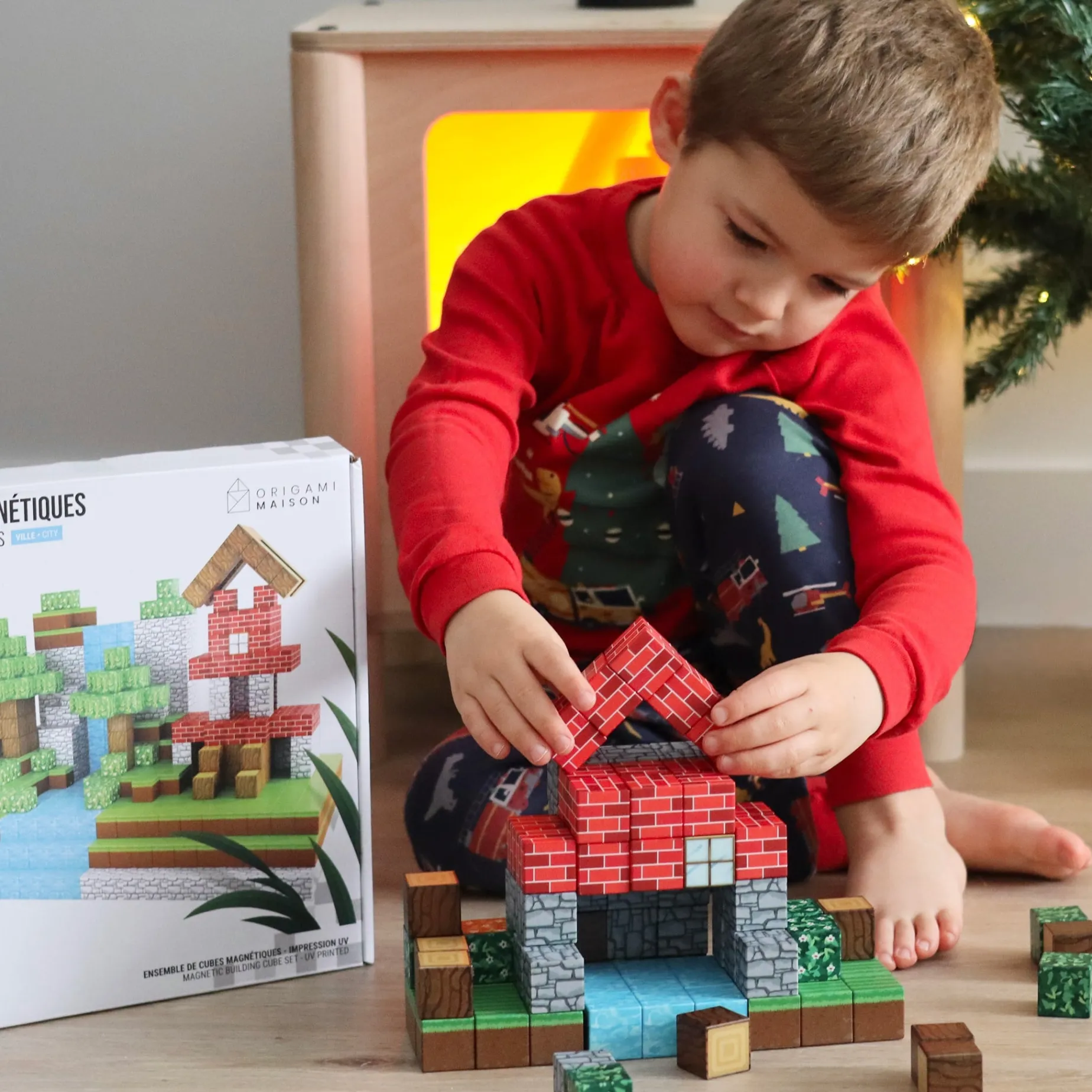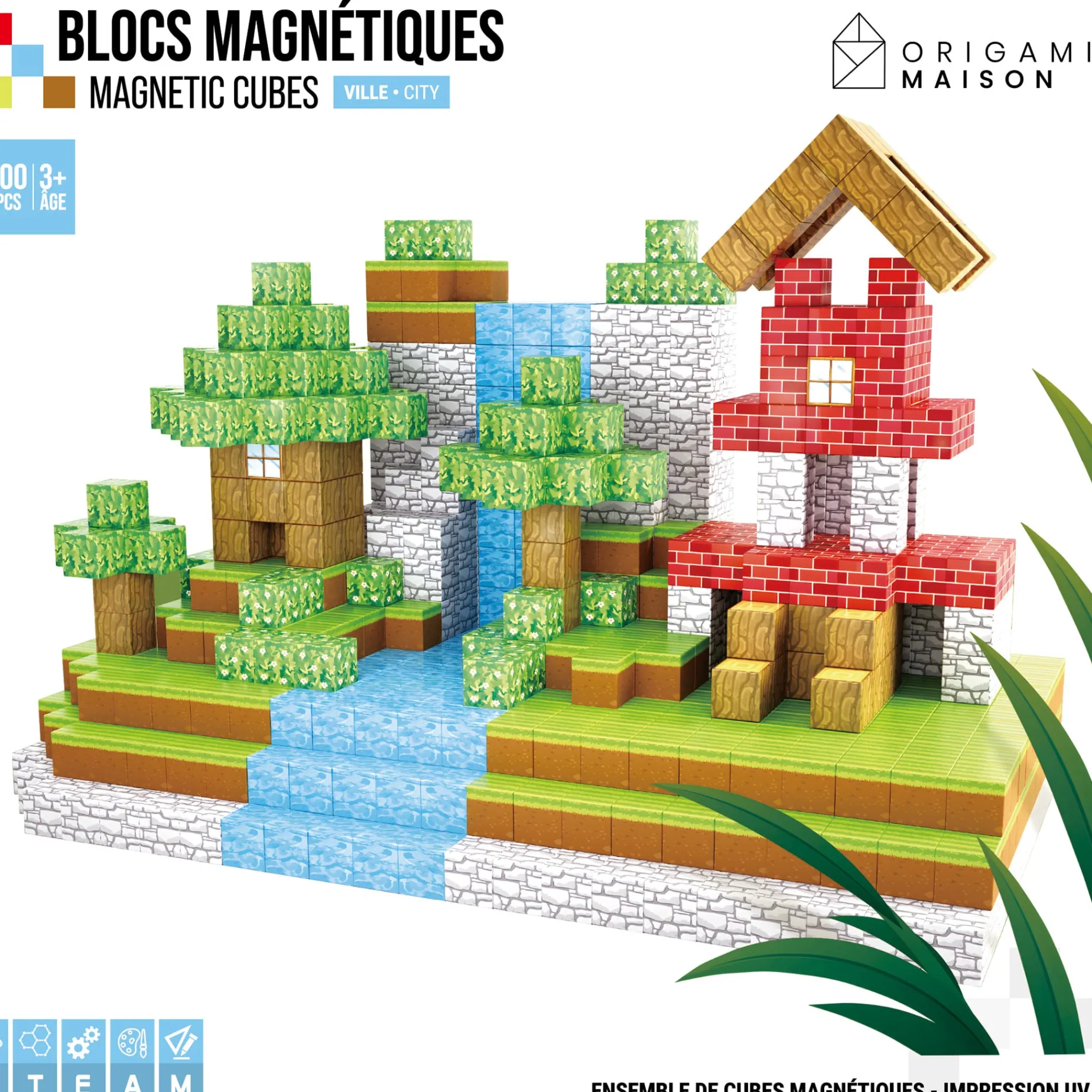 Inspire imagination and creativity with this city-themed magnetic block set! Children can build houses, trees, rivers, and colorful urban landscapes with 100 UV-printed magnetic cubes. With a simple and sturdy design, each cube connects easily, allowing young builders to bring their ideas to life while developing STEAM skills (Science, Technology, Engineering, Art, and Math).