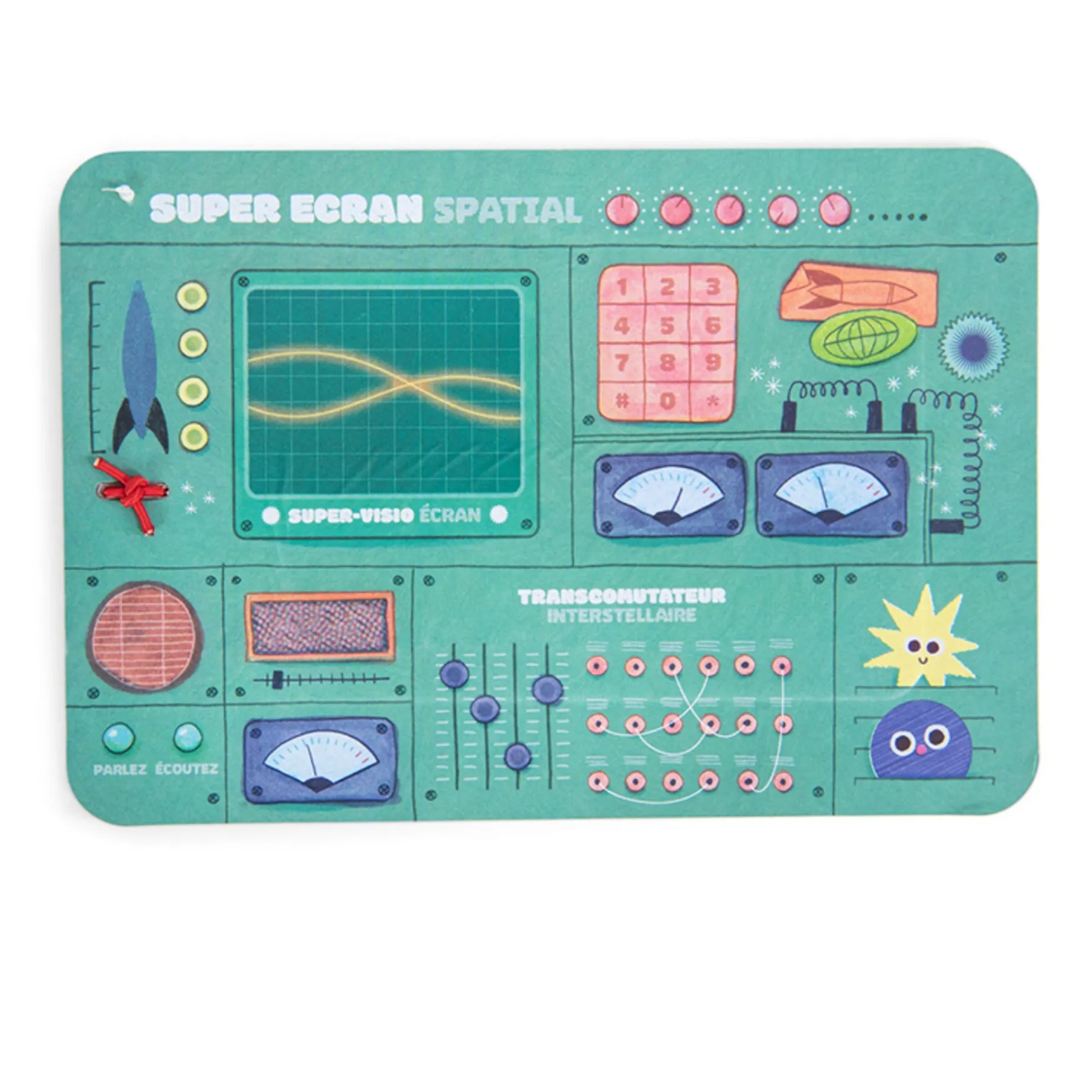 This magnetic screen, illustrated like a space rocket’s control panel, uses the magic slate principle: buttons, sliders, and more. With the stylus, children can write and draw endlessly on the honeycombed area! To erase the message, simply tap the slate.