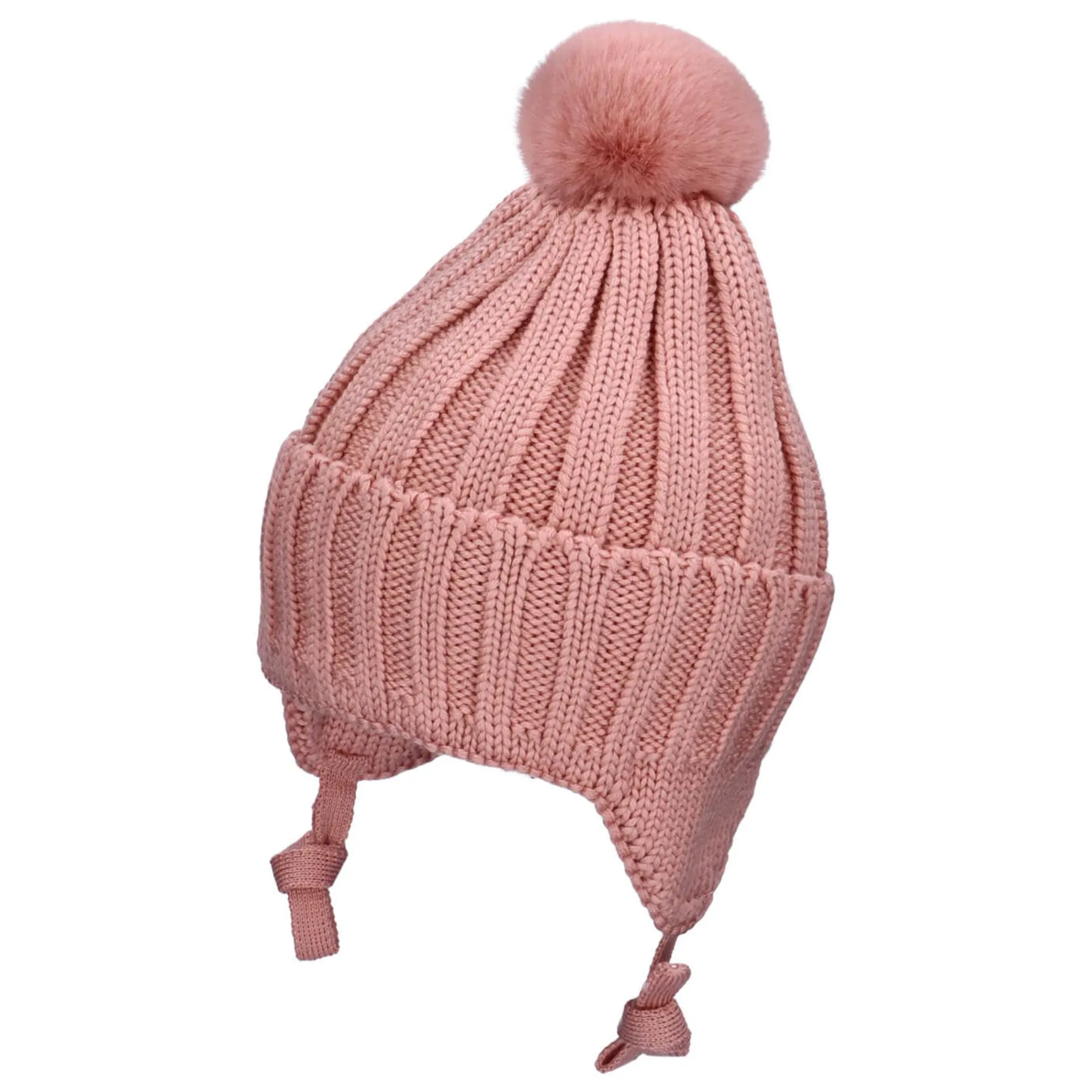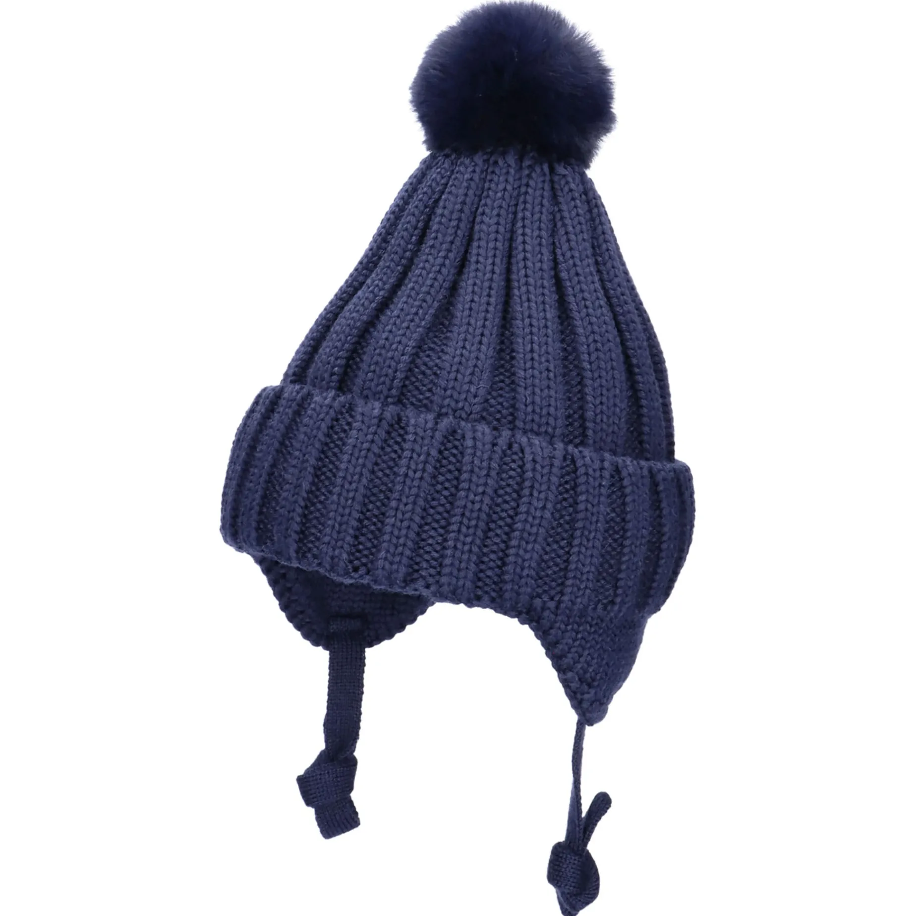 Winter hat made of 100% merino wool. Faux rabbit fur pompom. It will never look out of style, as the design is a classic original style so younger siblings can inherit it. Very warm and comfortable. Your child will be stylish and protected all winter long.