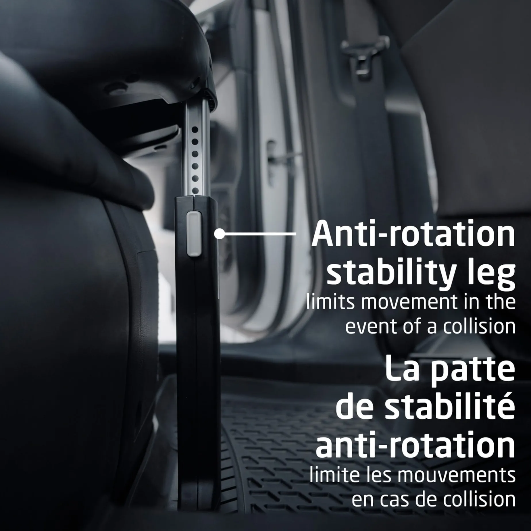 The intuitive base installation features MaxiLock™ technology with red-to-green tightness indicators, a 3-position adjustable base, a self-tightening UAS system, and a load leg which adds stability and limits movement in the event of a collision. Taxi-mode is simple and convenient with large, visible belt guides that show how to position the belt without using the base.