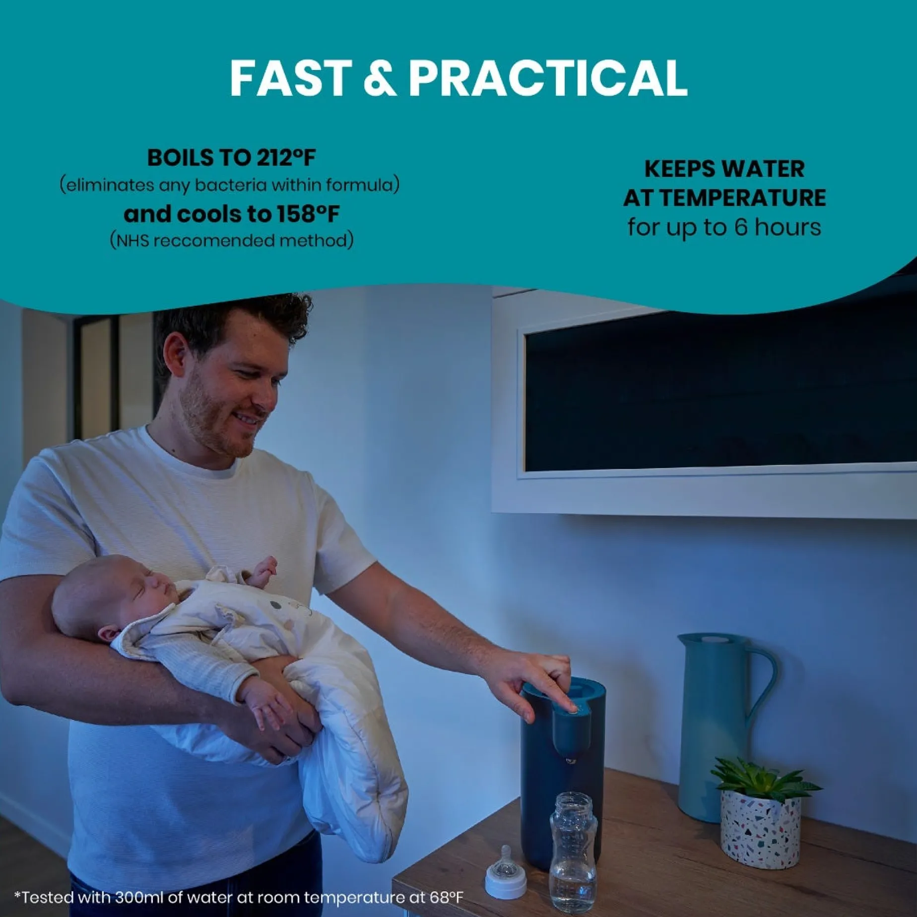 -Boil to 100C and bring water temperature down to 70C in 11 minutes! Guarantees bottle is prepared with 100% sterilsed formula and pre-boiled water which eliminates any risk of bacteria.