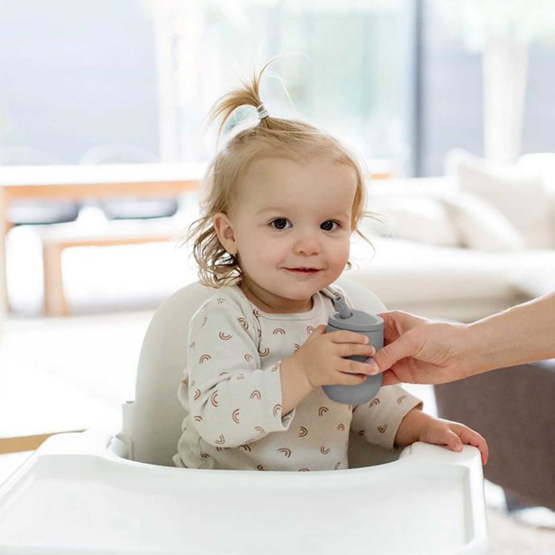 The ezpz Mini Cup + Straw Training System teaches toddlers to drink from an open cup and safely learn to use a straw.