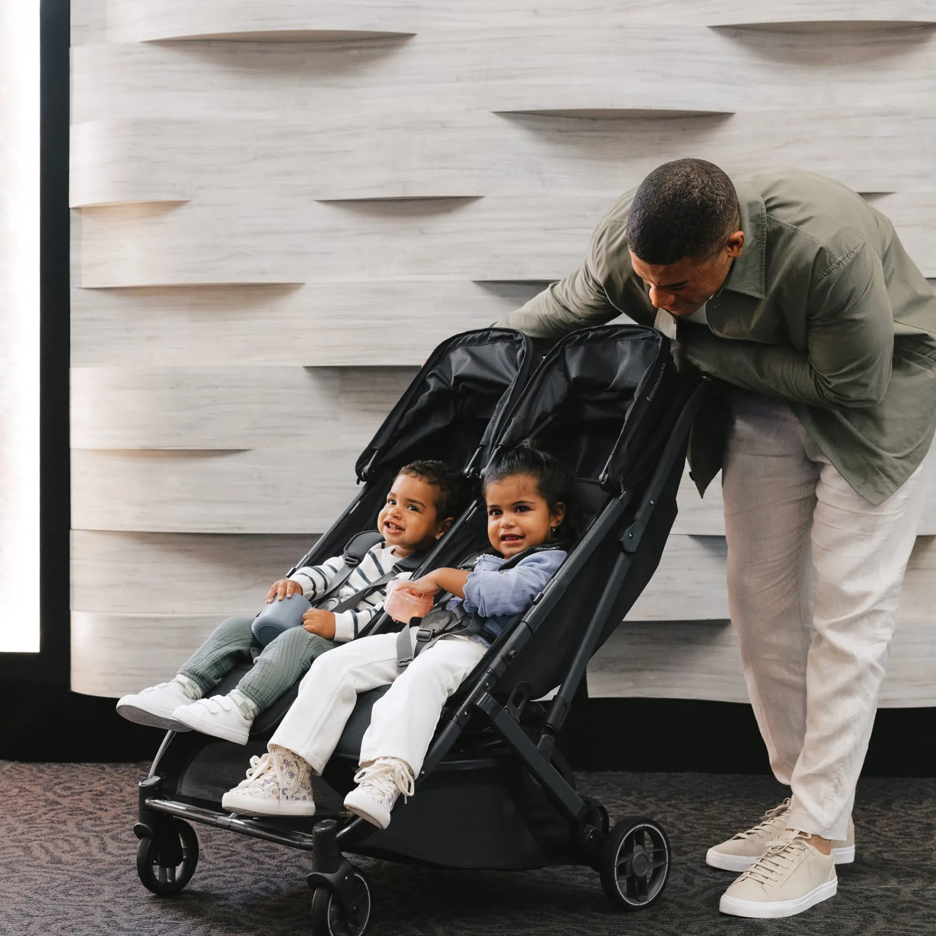 • Suitable from birth to 50 lbs per seat.