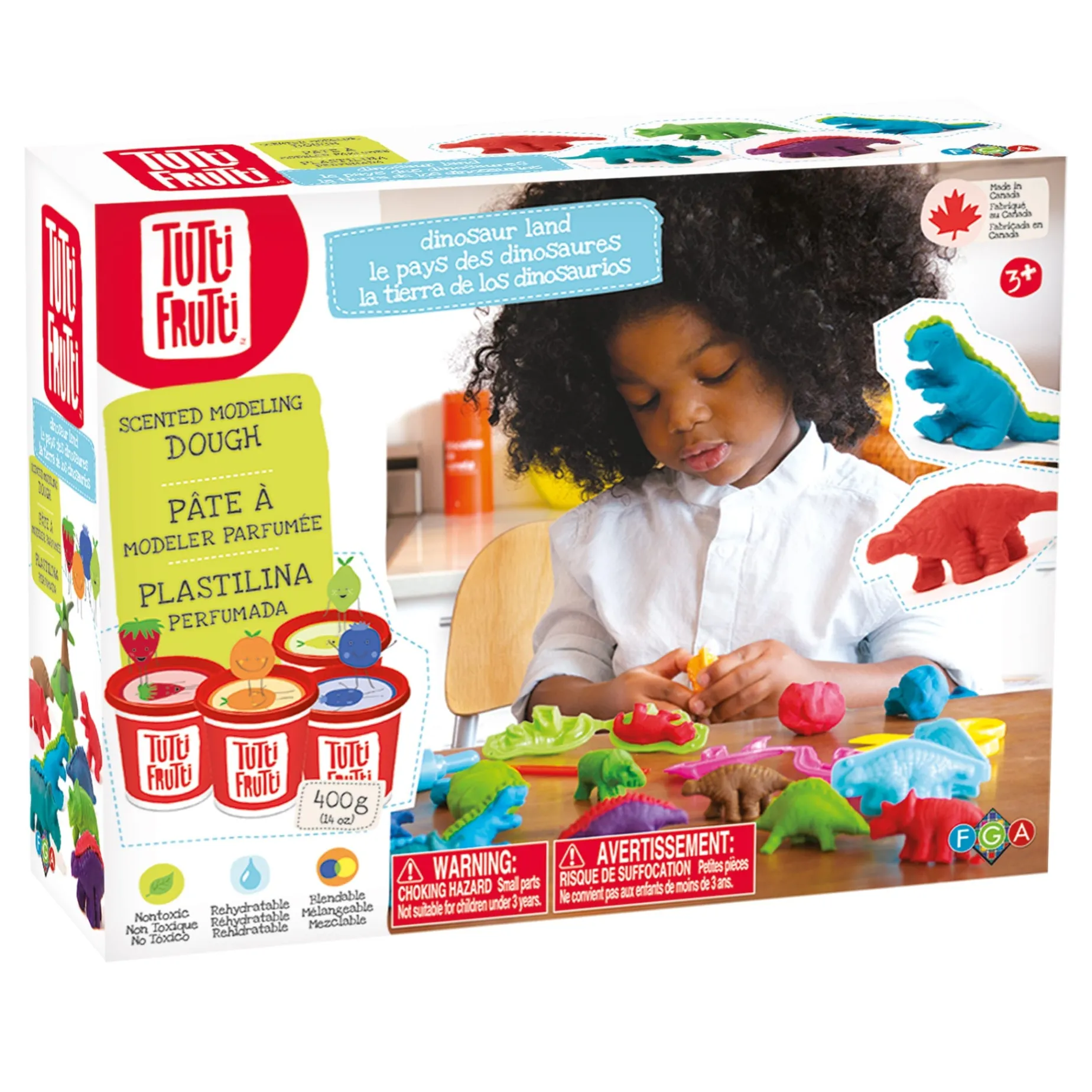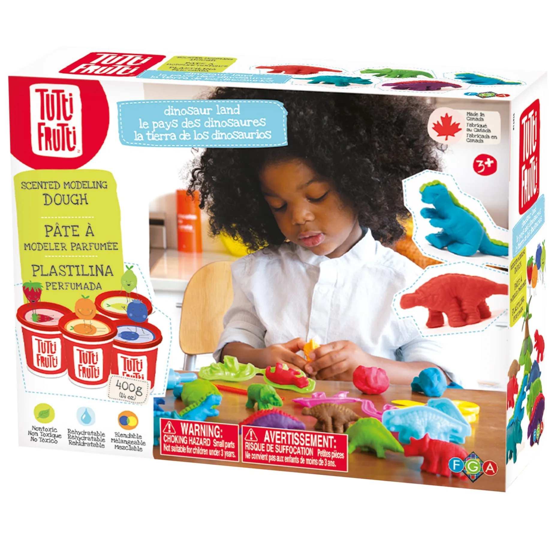 Great start off set for youngsters. Fill the 4 molds with your choice of colored dough to get the proper dino shape. Then use your imagination to add colored spines, teeth, claws, spots. Even make trees, boulders, and bones for a landscape.