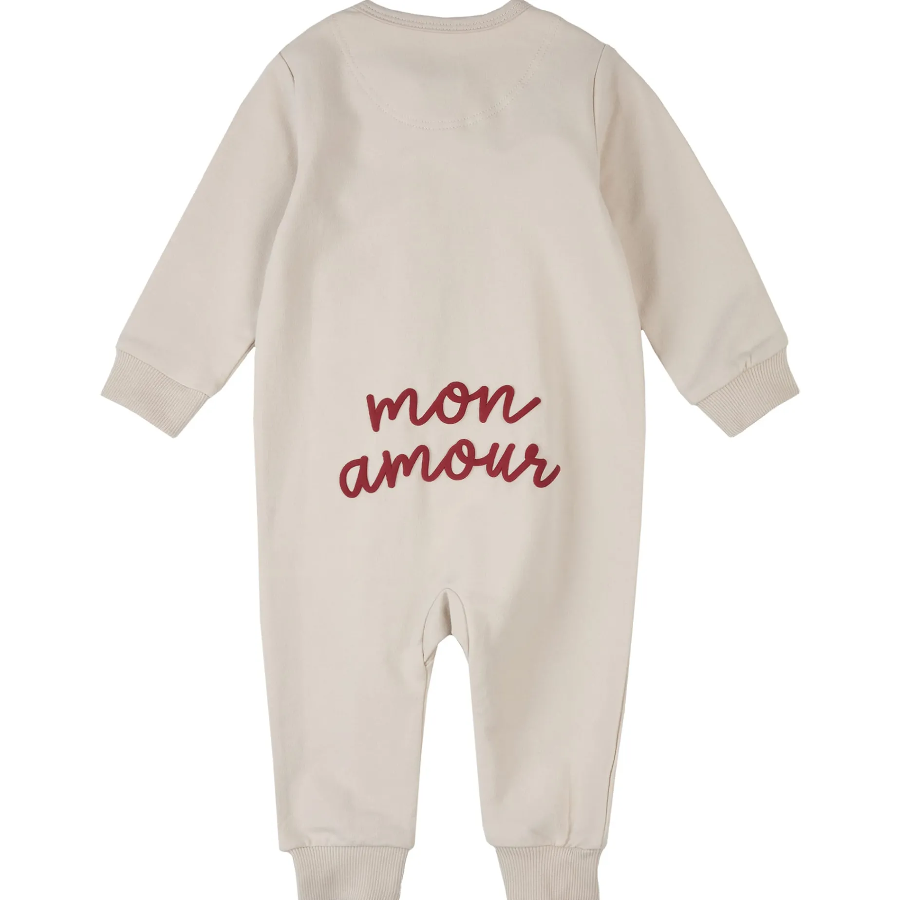 This adorable playsuit is perfect for the littlest member of the family and coordinates with sweaters from the same range for mom and older siblings. Made from the coziest French Terry, the one-piece will keep them snug and warm while the ribbed cuffs and ankles leave their hands and feet free to explore their surroundings. The full-length zip down the front makes dressing quick, easy and comfy. Finished with a chenille heart on the front and ‘Mon amour’ on the back, this piece is perfect for passing down through lovely little generations.