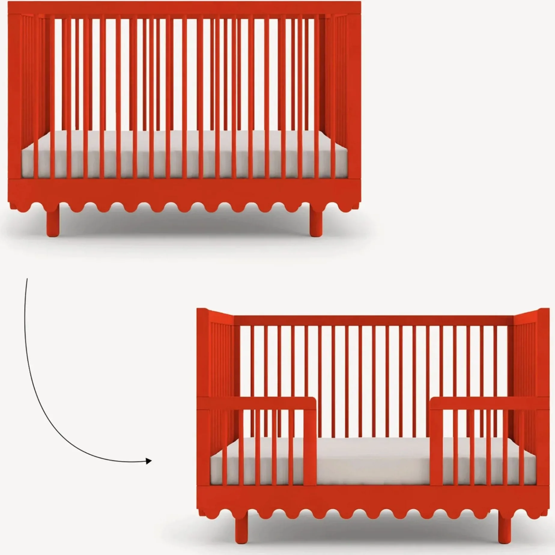 Converts back to Moss Crib simply by replacing a crib side panel