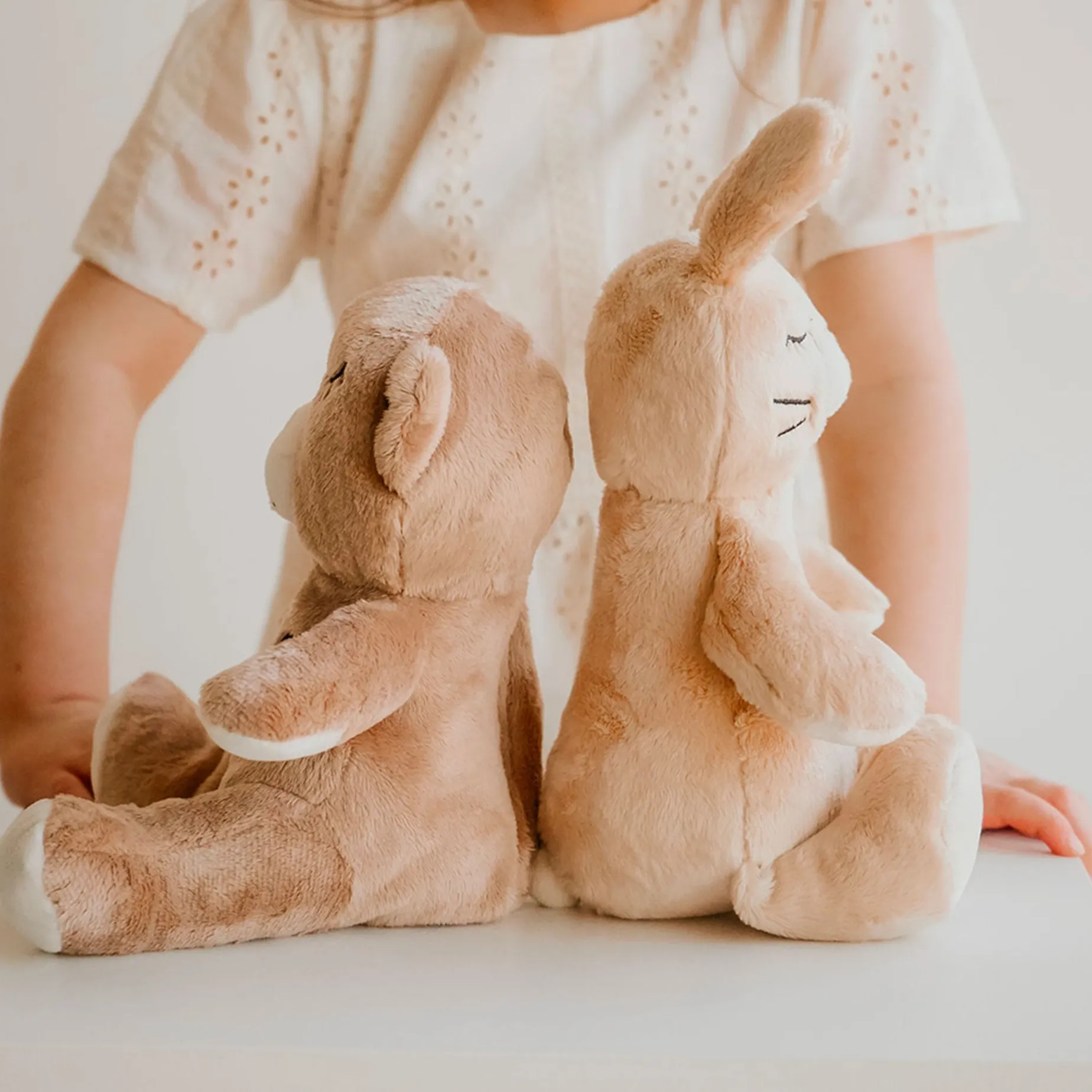 Latte, Moka’s new sidekick, is just as soft and comforting as the traditional teddy bear! In the pit of her belly, the same three lullabies can be heard vibrating. 5 minutes of musical bliss featuring: violin, cello and piano!