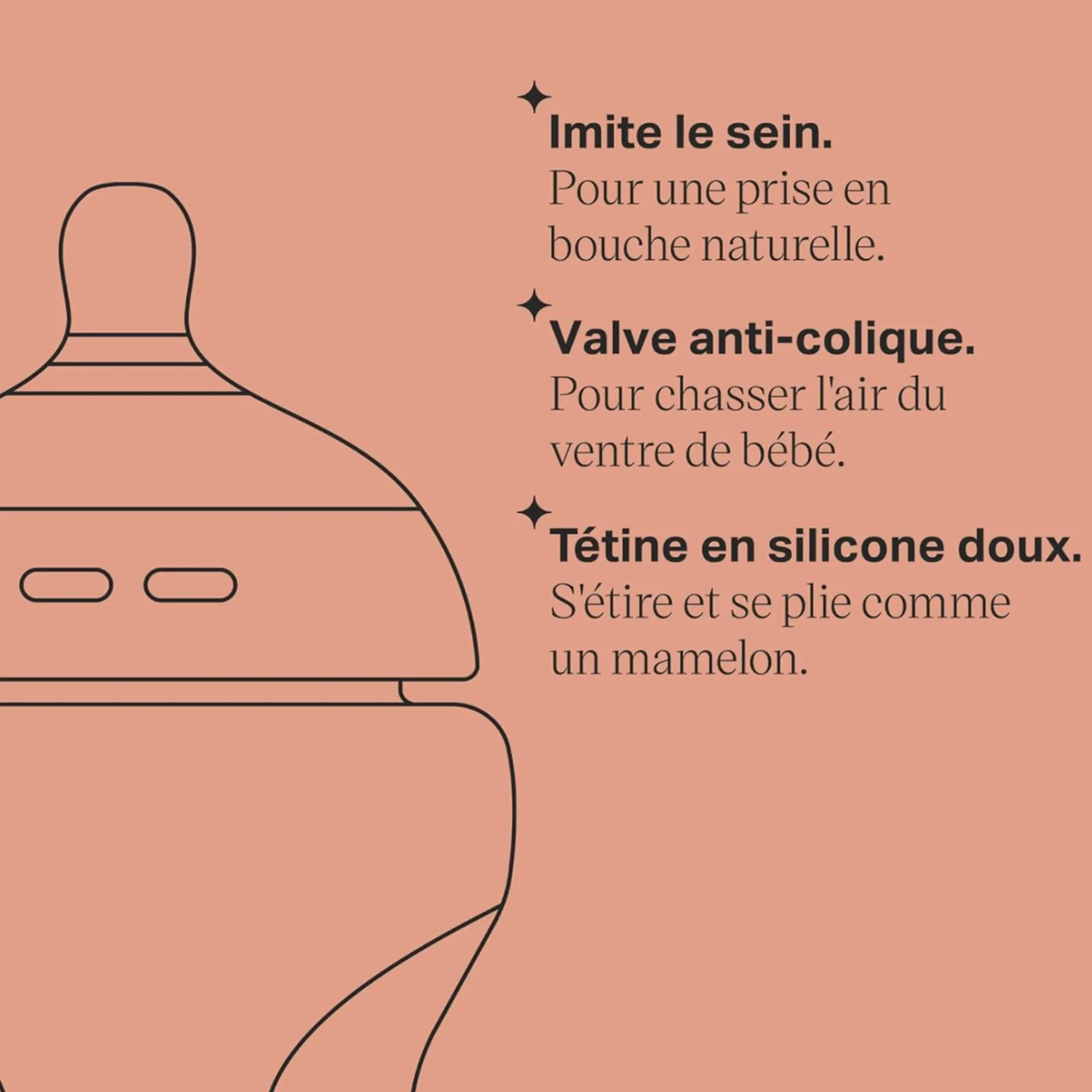 Natural flow: The soft silicone nipple is flexible and stretches like the breast, allowing your baby to feed comfortably at their own pace