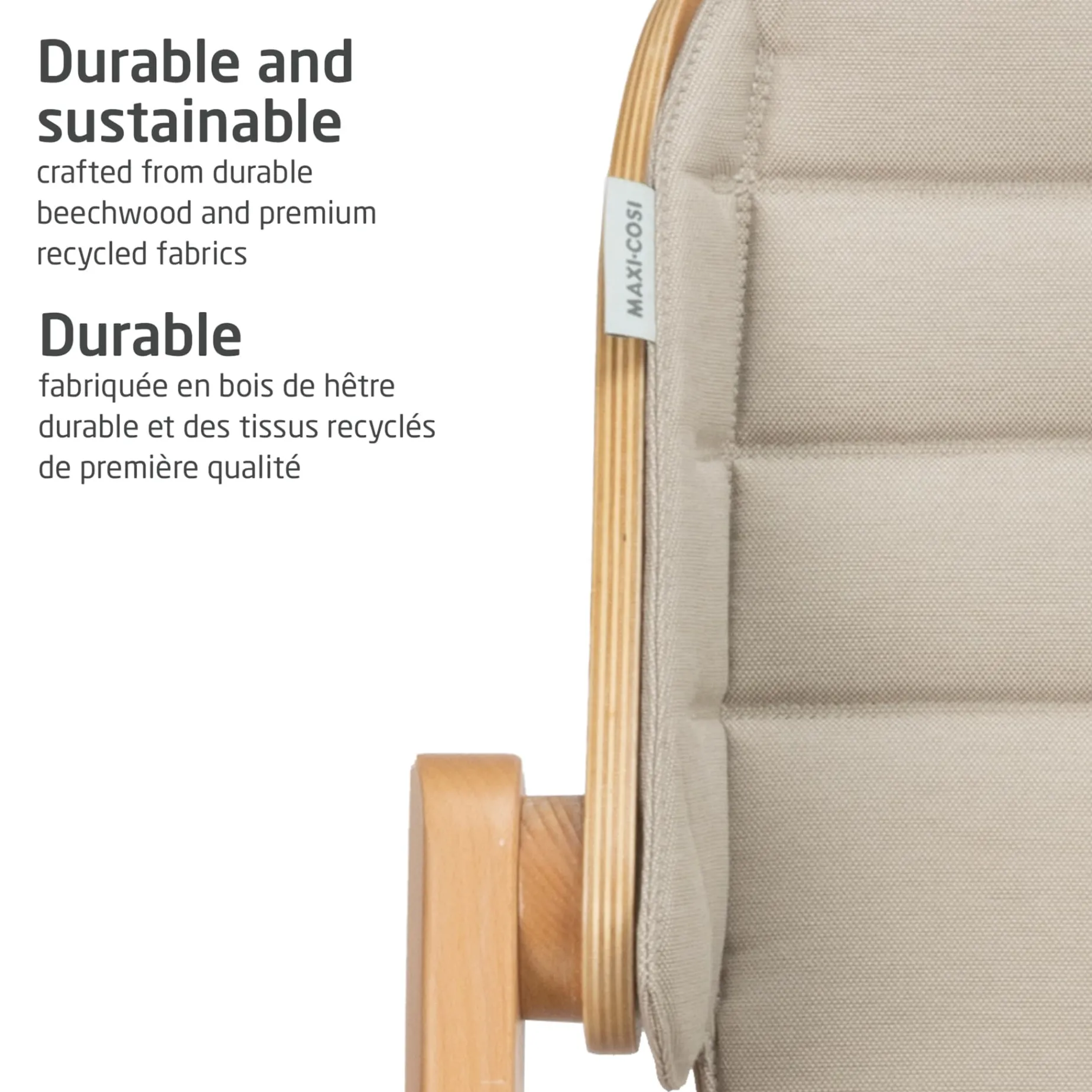 The Maxi-Cosi Nesta is a beautifully crafted wooden chair designed to bring timeless style and lasting comfort to your home. Reflecting the essence of European design, Nesta showcases sleek lines, durable Beechwood craftsmanship, and minimal use of plastics. Suitable for children from 6 months of age, or once they can sit unassisted, Nesta adapts seamlessly as they grow, offering ergonomic support and comfort through every stage of life.