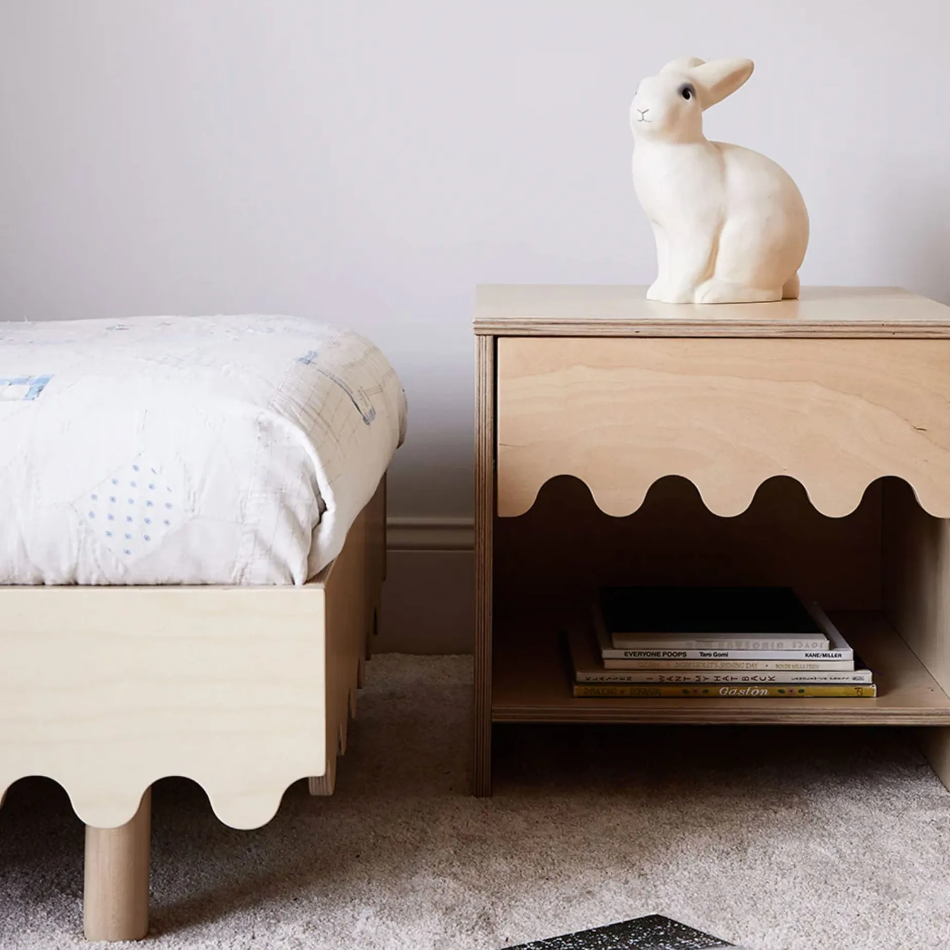 The Oeuf Moss Nightstand features a bold-yet-simple wave motif that’s an instant statement in any room, whether minimalist or maximalist. It smartly provides both open and closed storage, including a drawer to contain clutter