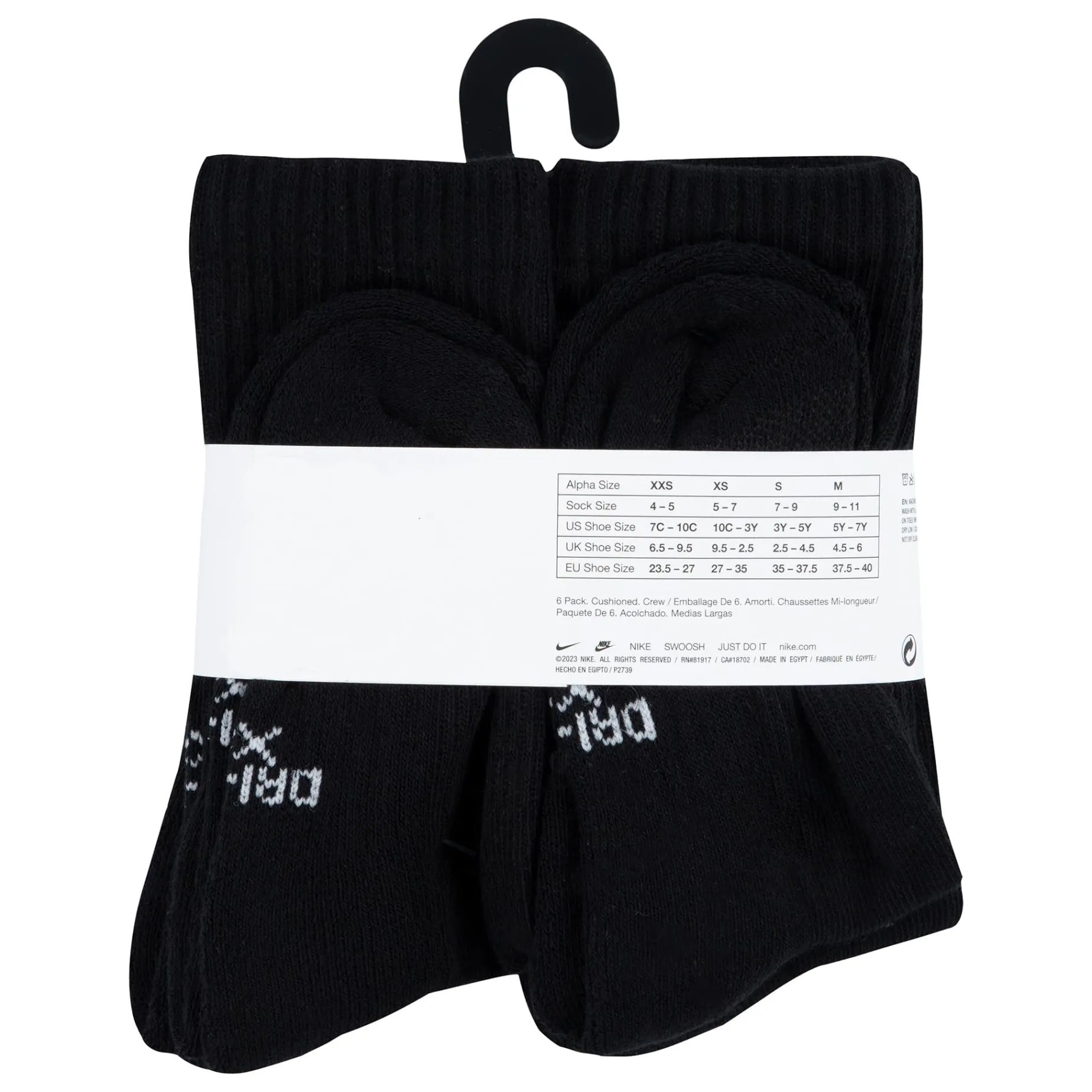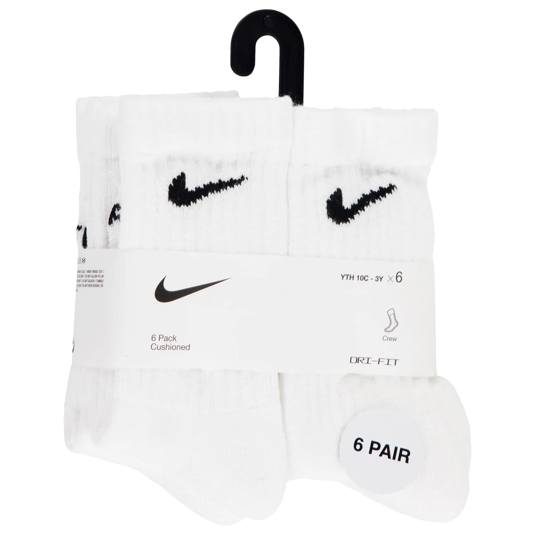Caractéristiques :Cotton/poly blend in a flat knit construction. Jacquard Swoosh logo detailing on the ribbed cuffs. Moisture-wicking Dri-FIT technology. Breathable mesh upper. Ribbed arch support band. Half cushioned toe/heel/bottom. Includes 6 pairs of crew socks.