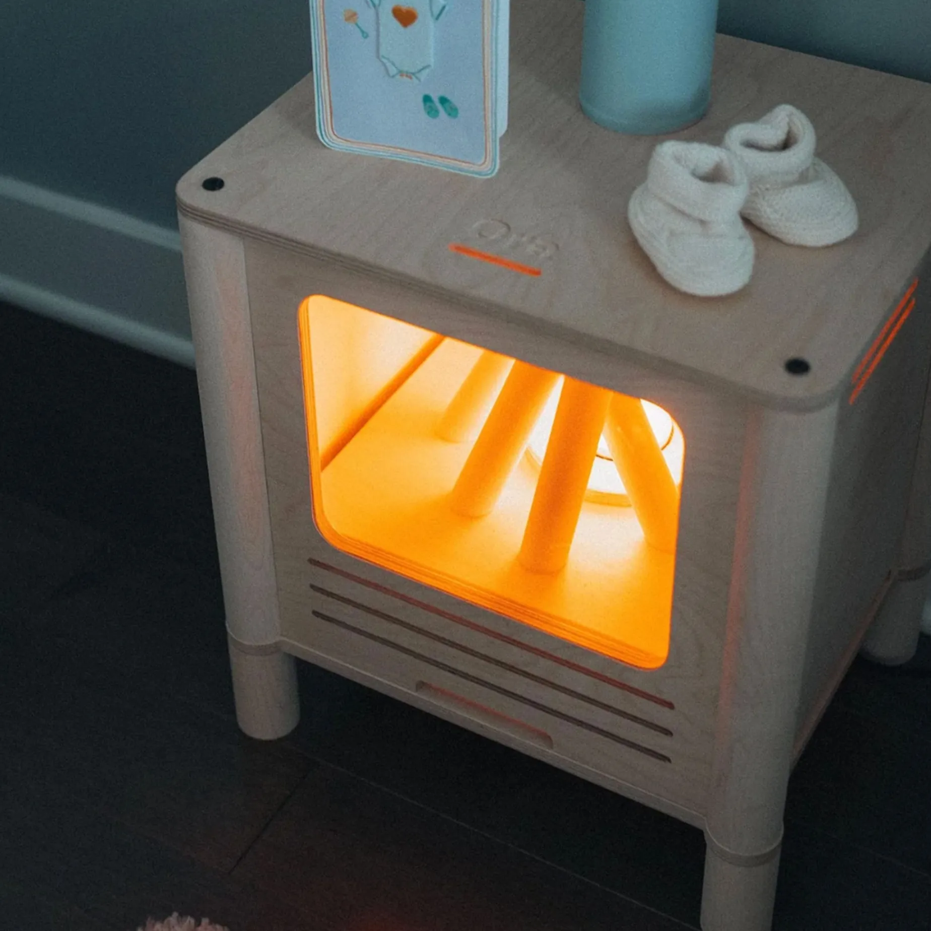 The fireplaces do not have built-in speakers, but you can enjoy sounds from the Oramood app using a small Bluetooth speaker placed nearby. Together, they create a magical and immersive atmosphere