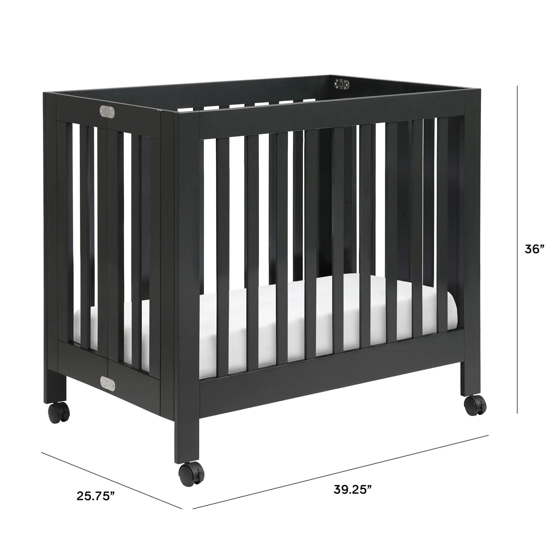 -UNIVERSAL MATTRESS FIT: The Origami is a standard mini size crib which includes a 1″ waterproof mattress pad. We recommend additional support with our Pure by babyletto hypoallergenic and eco-conscious mini crib mattress (37″ x 23.5″).