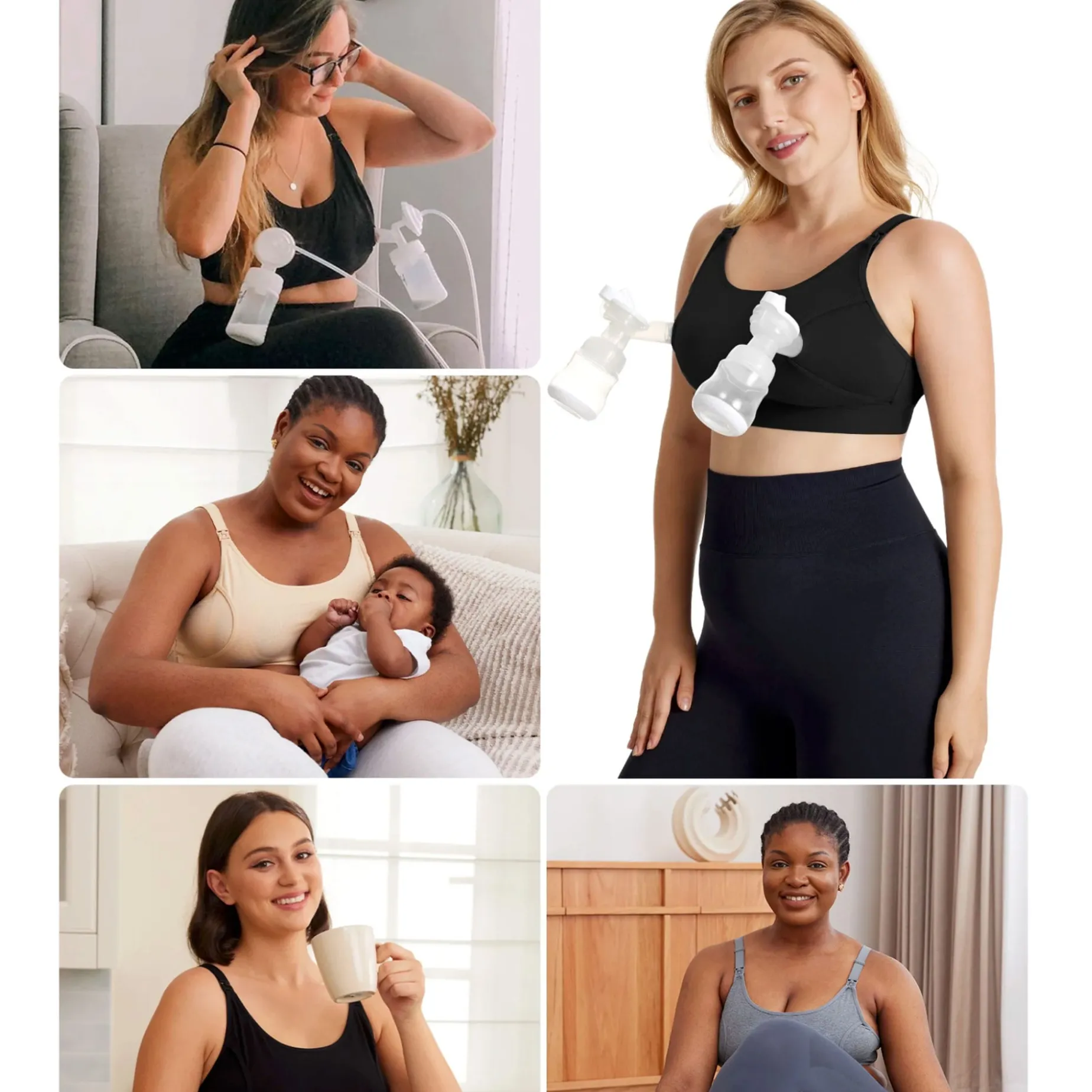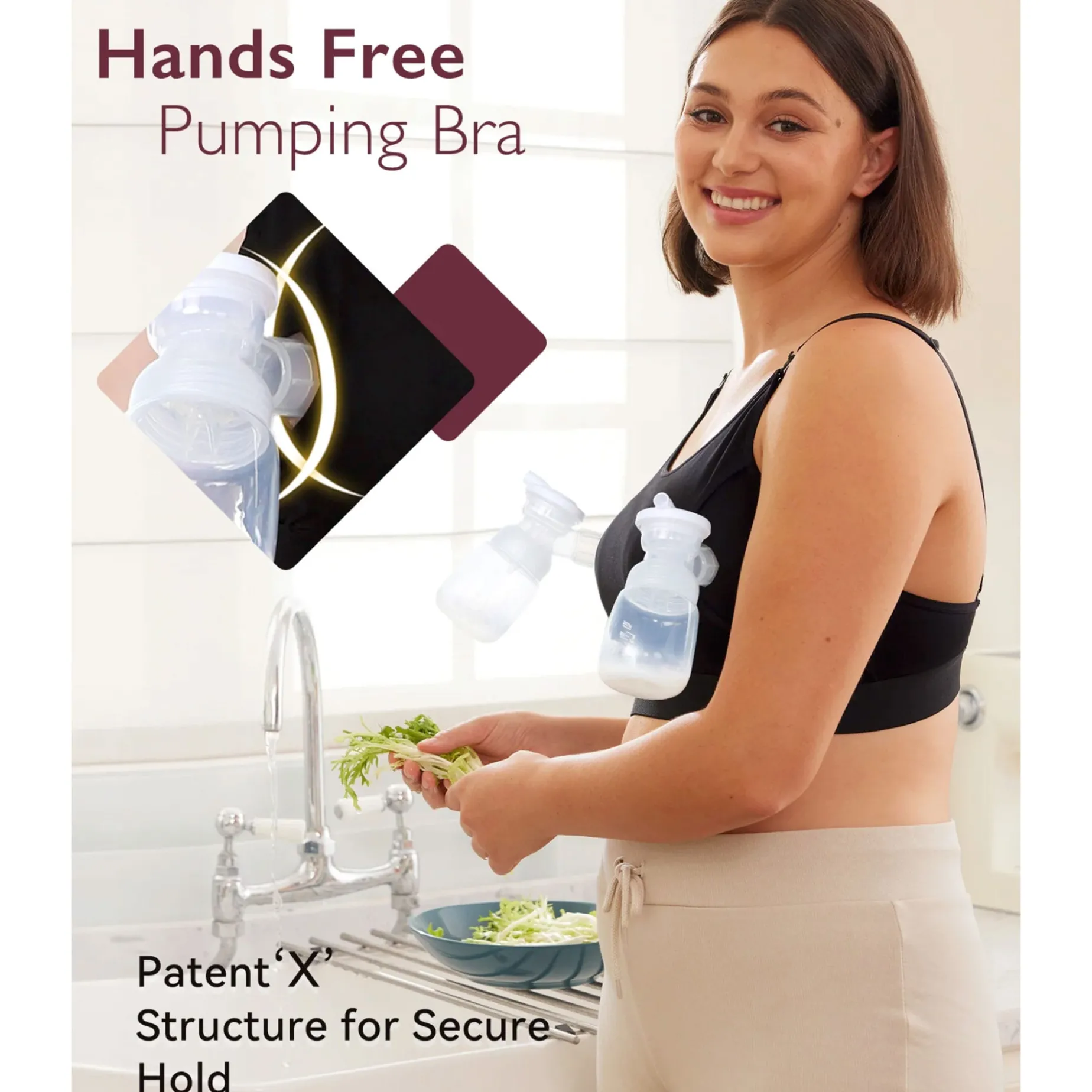 -As a Pumping Bra: It gives breastfeeding mothers the freedom to go about their routine while pumping. If multitasking is not needed, it still provides relief with hands-free pumping.
