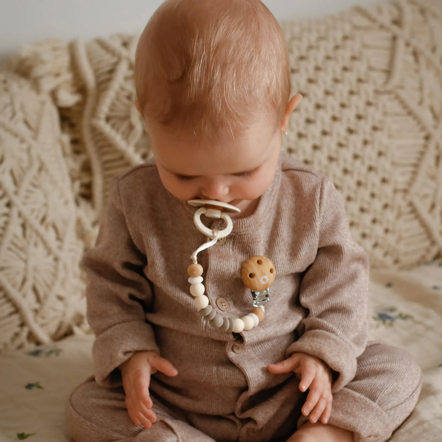 The teething pacifier clip is an essential accessory for babies! It permits to always keep the pacifier at fingertips and near the mouth and avoid that it falls constantly on the ground! The pacifier is perfect to relieve teething pain, it is at the time a fashion, practical and funny accessory for your baby!
