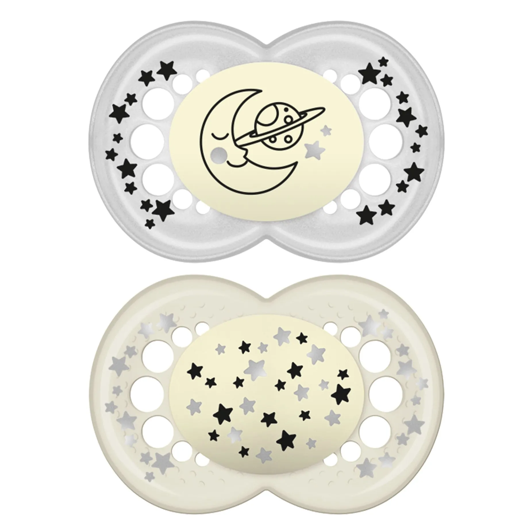Designed to keep baby calm and promote proper oral development, MAM pacifiers have a SkinSoft™ nipple that is easily accepted by babies and a shield that allows for maximum breathability for baby’s sensitive skin. The Night pacifier glows in the dark, making it easier to find in the crib at night.