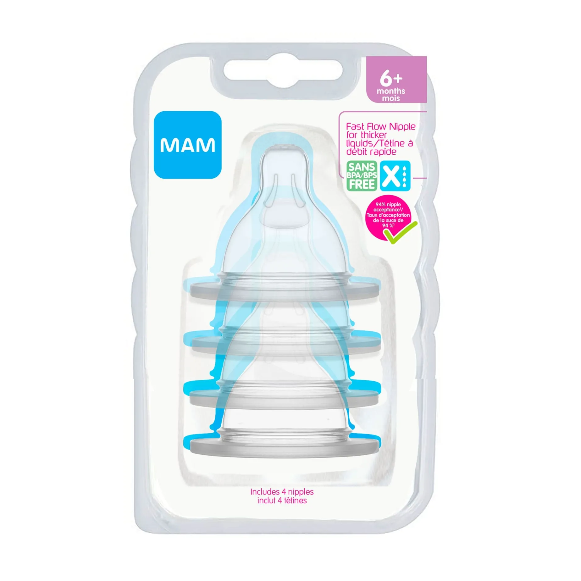The SkinSoft BPA-free silicone nipple feels just like mom’s skin during breastfeeding. Due to their unique flat and symmetrical design, MAM baby bottle nipples fit perfectly into baby’s mouth. They also fit all MAM feeding bottles. Air valve prevents nipple collapse, allowing babies to drink at a comfortable pace.