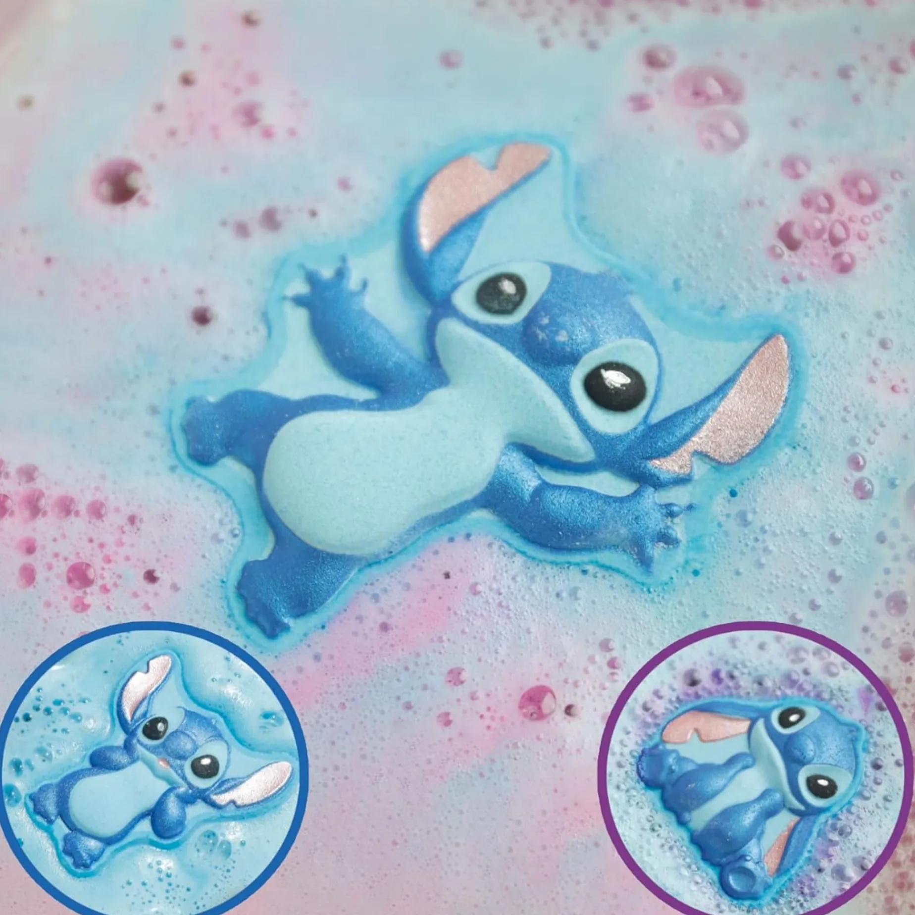 Delight in a trio of 100 grams blue raspberry-scented, beautifully painted molded bath bombs. Each bath bomb features a different pose of everyone’s favorite Experiment 626, each releasing a different color once it hits the water, bringing a touch of magic and mischief to bath time.