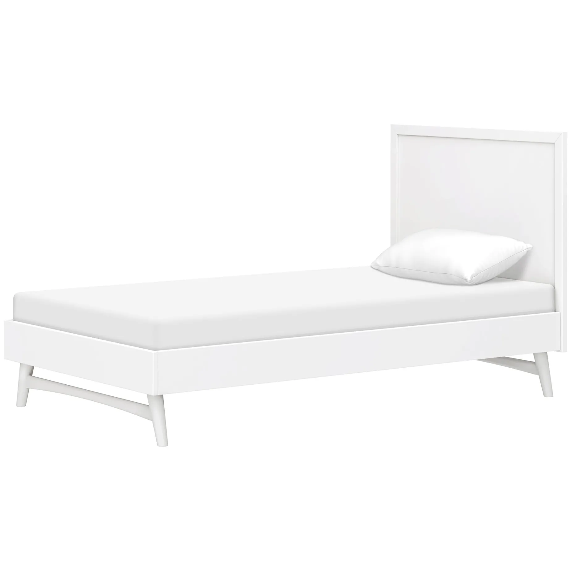 Mid-century modern style meets kid-friendly function in the Palma Twin Bed. With its clean lines and iconic flared legs, this bed brings timeless design to your kiddo’s room, while staying versatile enough to blend with any décor—from playful pops of color to soft, neutral vibes. The low-profile bed frame makes bedtime easy, and for those first big-kid nights, add the removable guardrails (sold separately) for extra safety.