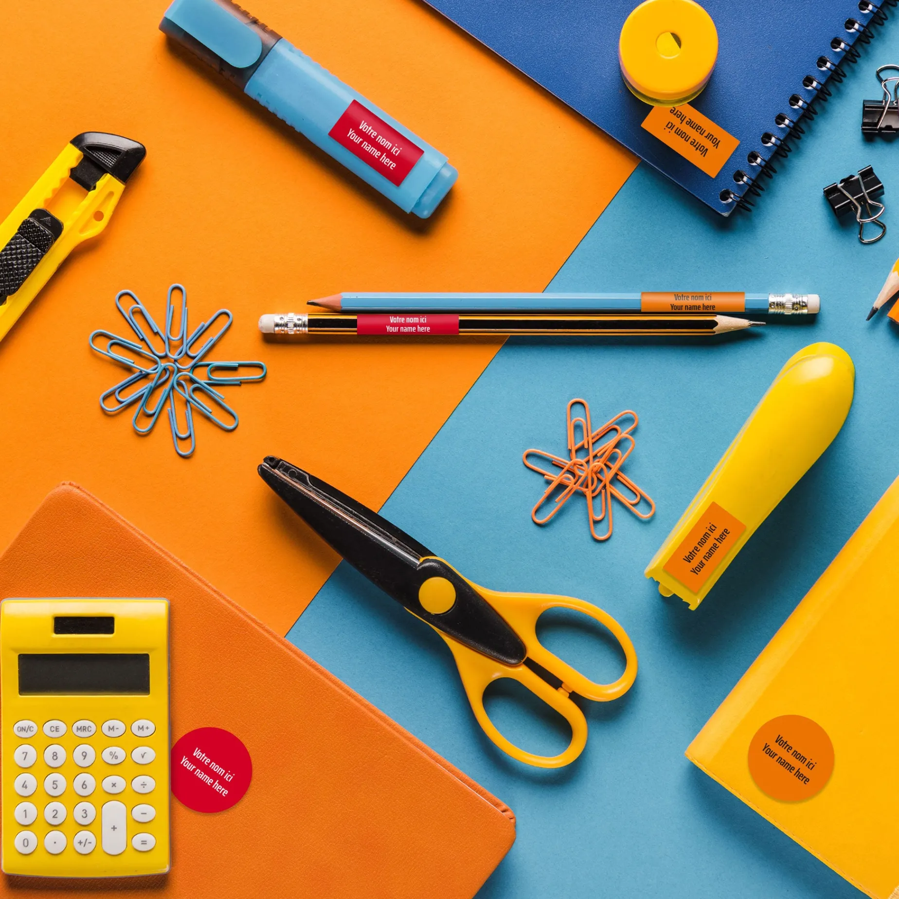 The set of personalized sticky labels ClĂ©ment becomes your best ally for the quick identification of your family’s personal items. In a few seconds, young and old will be able to recognize their school items, lunchbox items, sports equipment, shoes, clothes, etc. Waterproof and durable, the labels are not afraid of freezing, water, heat, or steam. They are resistant to the microwave, refrigerator, freezer, dishwasher, washing machine, and dryer.