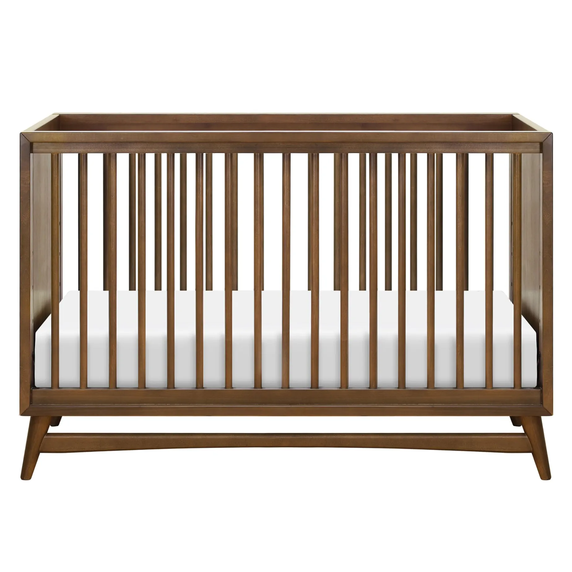-Refined mid-century modern style: featuring a modern, clean silhouette and classic rounded spindles. flared tapered legs add a playful touch to this sophisticated crib