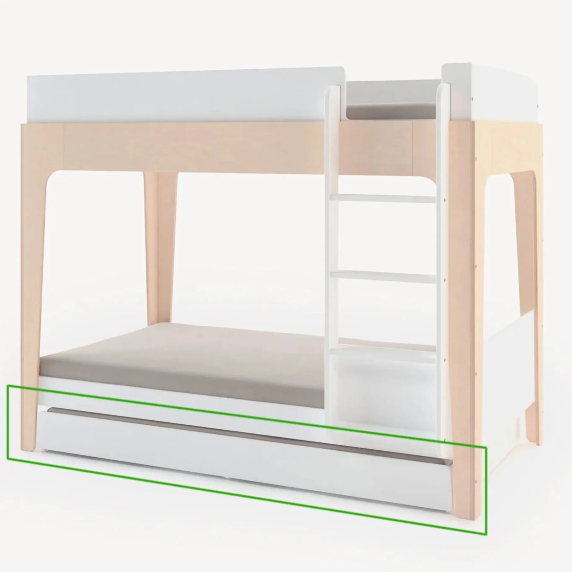 The trundle comes with a replacement ladder for the bunk bed. It hangs vertically so it doesn’t interfere with the use of the trundle. No additional purchase is necessary.