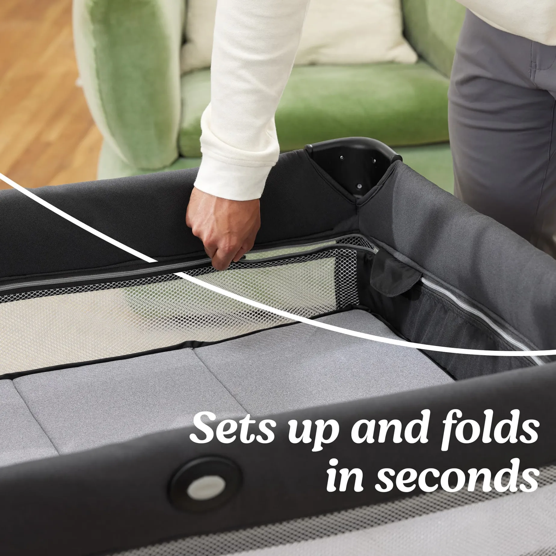 Whether at home or on the go, the Graco® Pack ‘n Play® On the Goâ„¢ Zip provides a nurturing, cozy space for your little one to safely transition from playtime to naptime. A refreshed design features the softest, premium knit fabrics, elevating baby’s comfort as they move and groove. A unique, zip-in full-size infant bassinet allows for improved visibility of baby, conveniently keeping your little one within sight and reach for added peace of mind. The playpen folds seamlessly for compact storage with its signature Graco® push-button fold , while the durable frame and carry bag make it perfectly suited for effortless travel. Baby can enjoy the full-size playard at home or any time you hit the road, from infant to toddler. Playard and bassinet follow AAP Safe Sleep